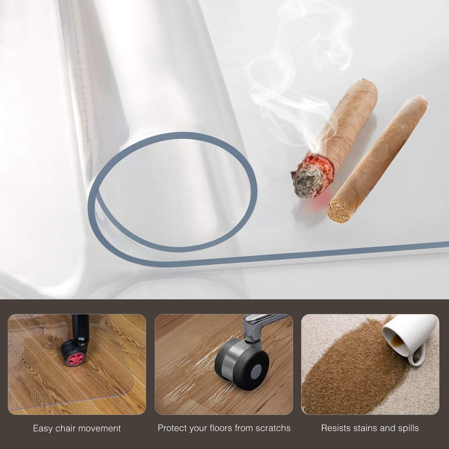 - EASY TO UNROLL AND PACK- The office chair mat is flexible enough to lay flat quickly. And when you do not want to use the clear floor protector mat, you could roll up it easily and it only occupies a little space.