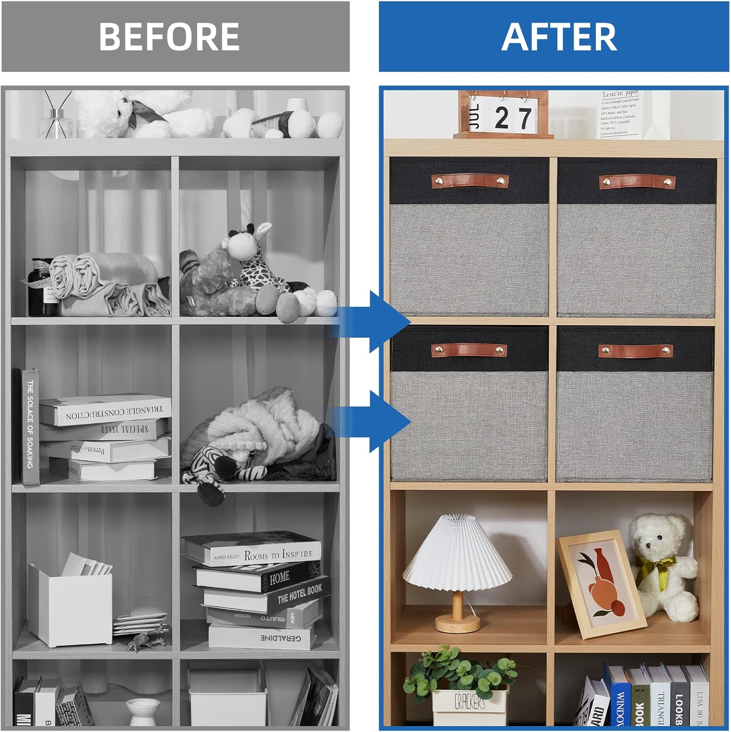- SOFT STURDY PU HANDLES: The sturdy leather handles in front of cube bin make transport a breeze. Convenient and sturdy attached handles make this fabric cube easy to pull in and out.