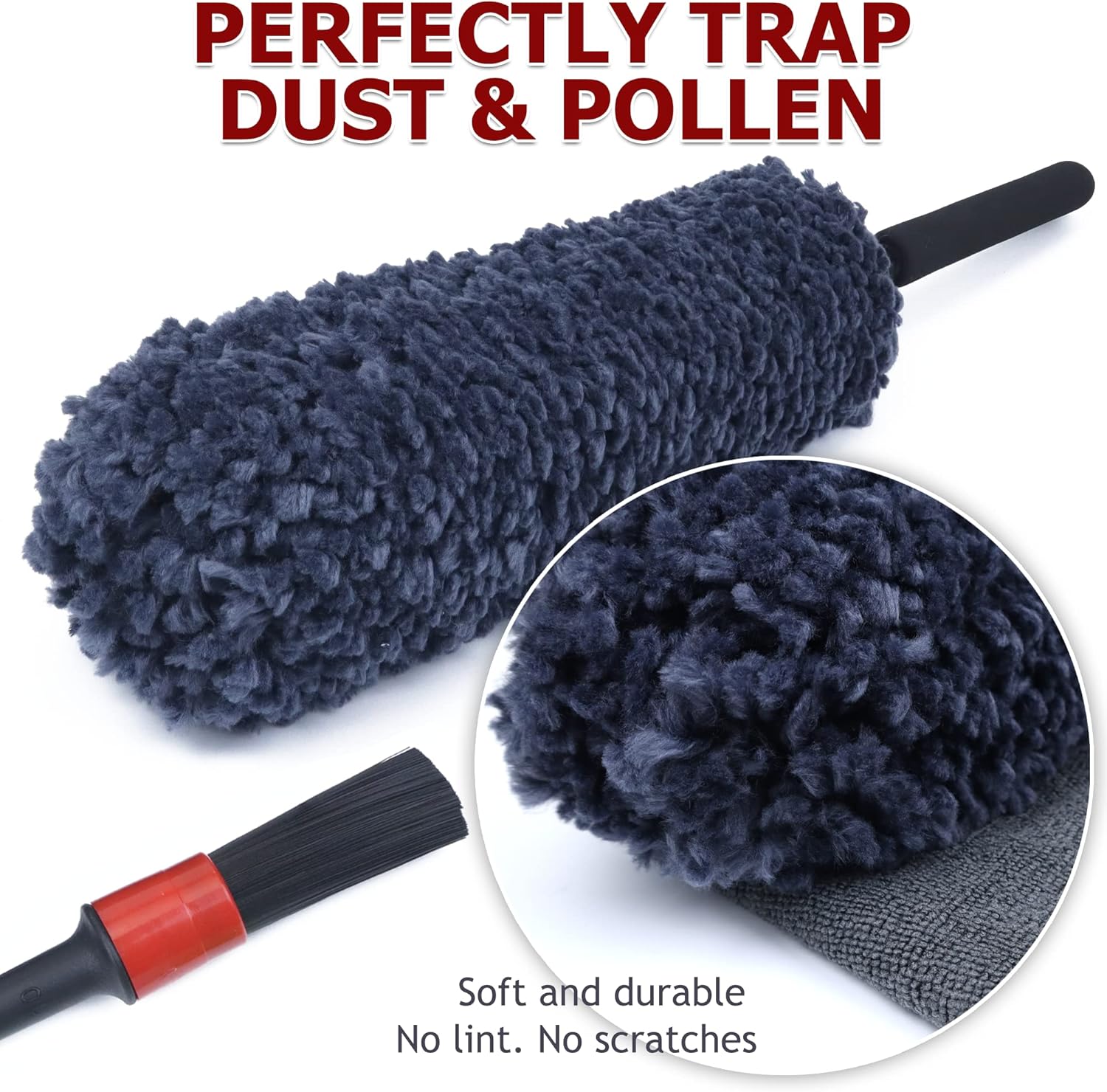 - Perfectly Trap Dust & Pollen: The superfine microfiber duster collects dust from cars, trucks, and boats completely. This car dusting brush doesnโt push dust around but actually lifts it off. The handle can reach difficult areas like the car roof and dashboard corners and suck up the dirt and dust quicker.