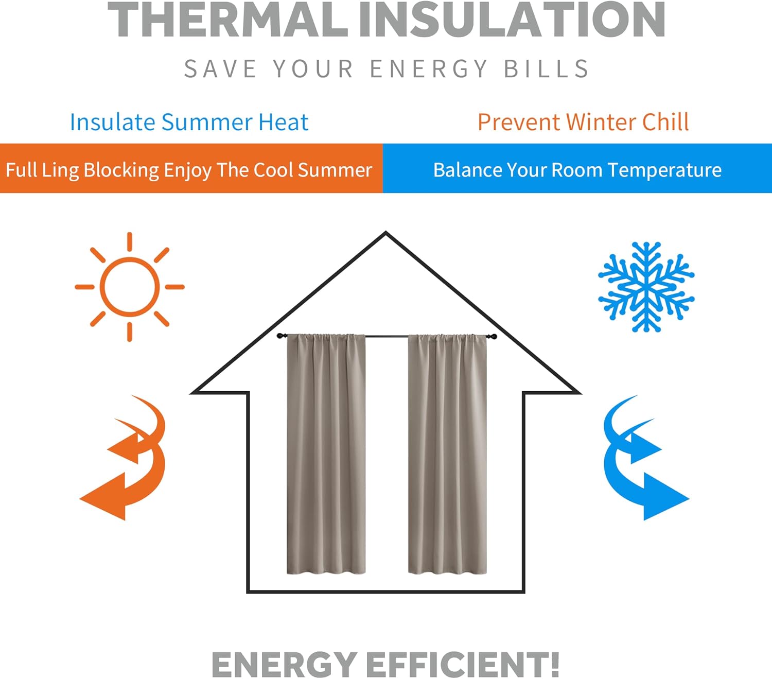 - ENERGY SMART - Thermal property of the blackout curtains ensure that the room temperature is regulated. Protect your indoor furniture from directly exposing to the sun.