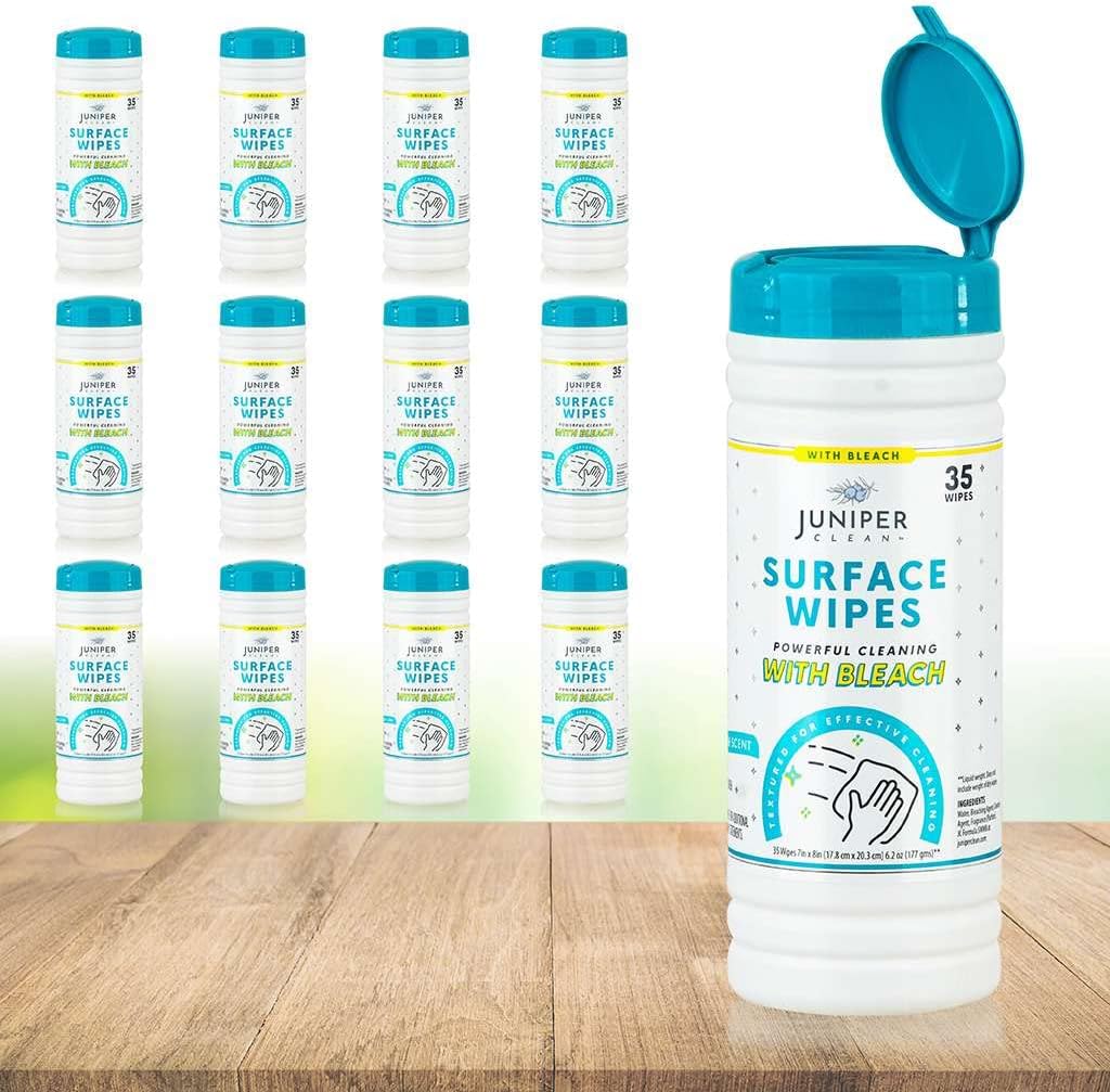 - 【 INCLUDES - CONTAINS 12 PACKS CANISTER OF 35 DISPOSABLE 】 Surface cleaning wipes with bleach are a total 420 disposable. Wipe dimensions are 7.5" x 7"