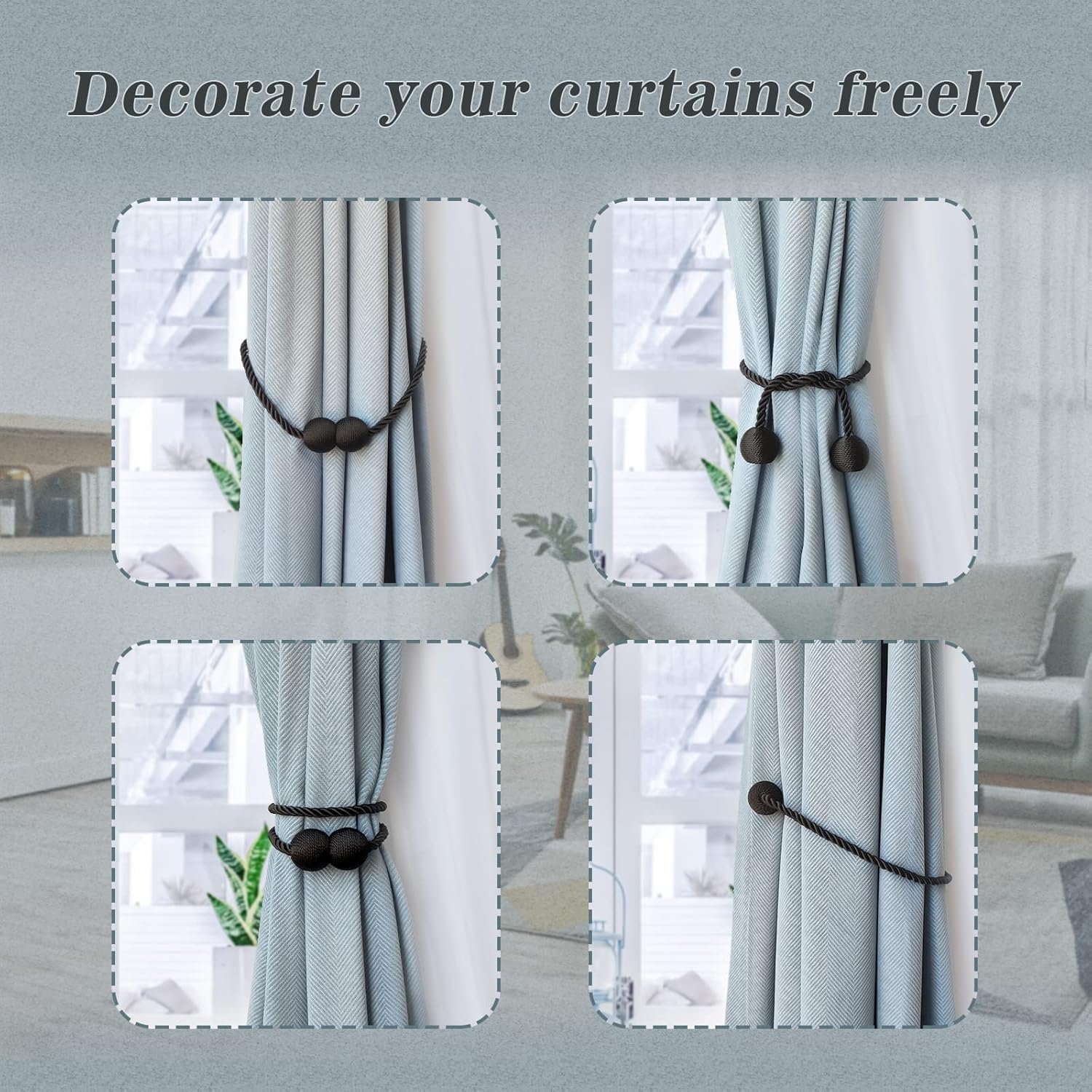 - š[Variety of use methods, suitable for a wide range of scenarios] You can clamp the curtains in different elegant ways, and when you don't use the curtains, you can fix them anywhere, which is perfect for living room, bedroom, kitchen, dining room, bathroom and office.