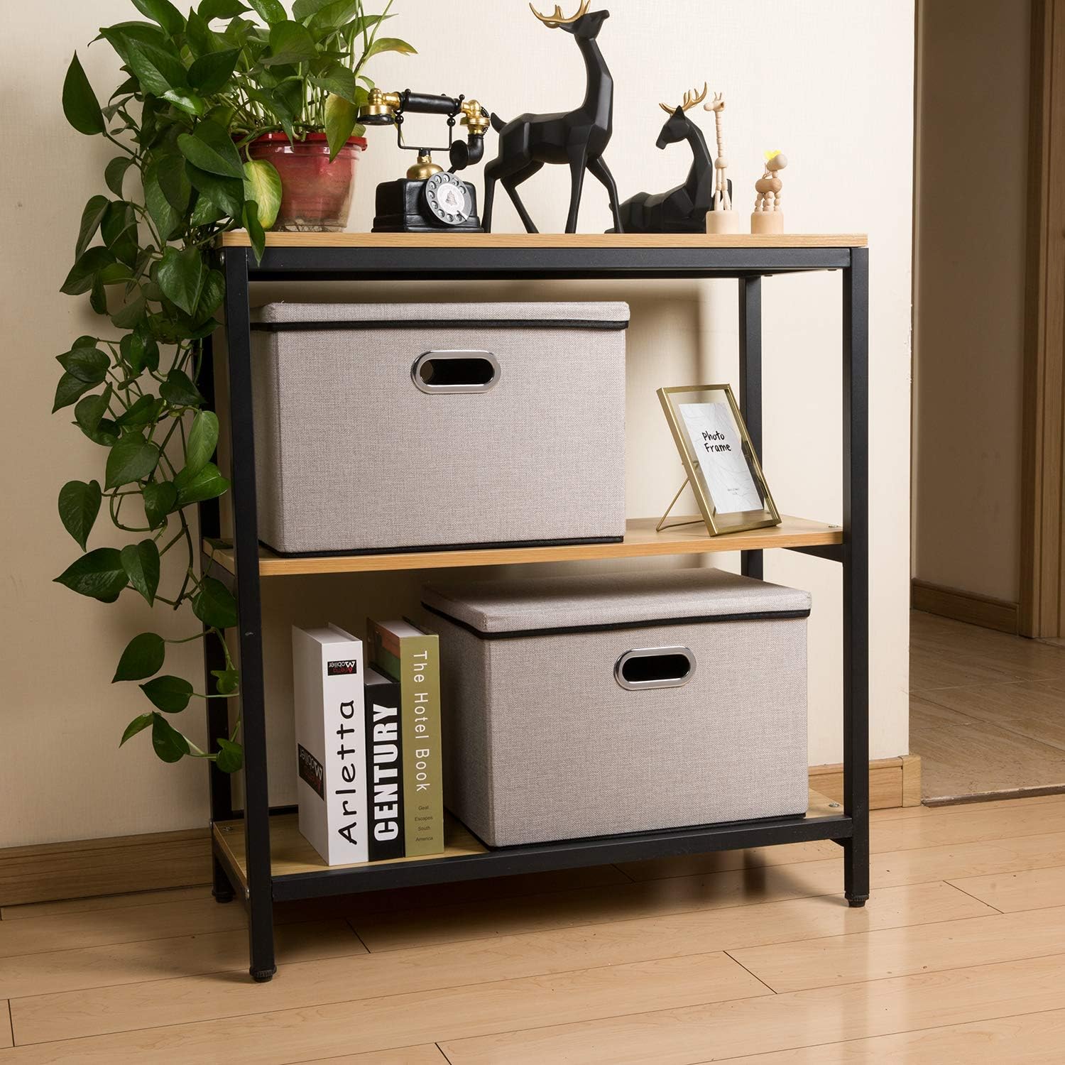 PRANDOM Extra Large Collapsible Storage Bins with Lids [3-Pack] Linen Fabric Foldable Storage Baskets Boxes Organizer Containers Cube with Cover for Bedroom Closet Office Nursery (22.8x15.7x13.8)