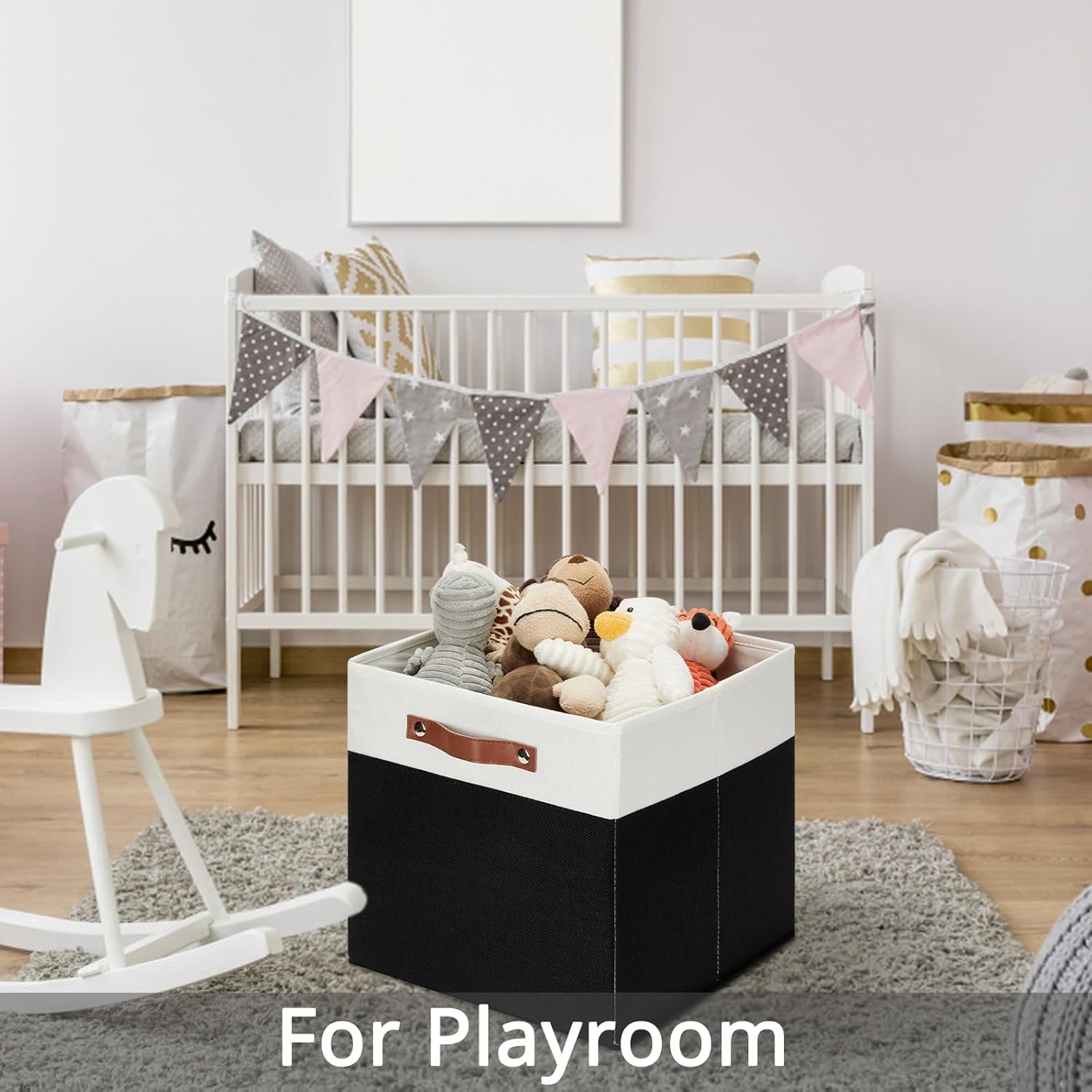 DULLEMELO Storage Cubes 13 inch,Cube Storage Bins with Handles for Organizing,Fabric Storage Baskets for Shelves Nursery Closet Home Organization (White&Black-4 Pack)