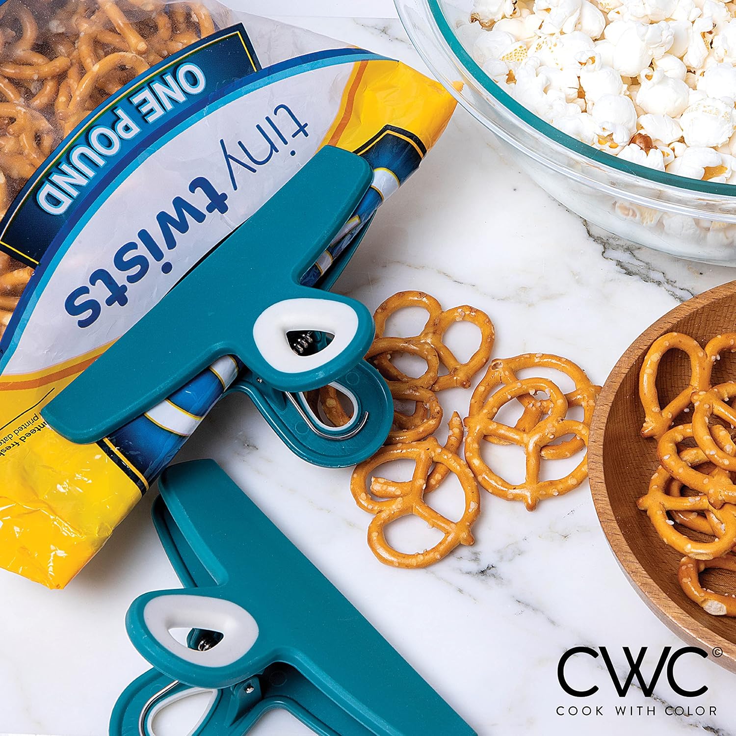 - Bag clips are one of those things you never have enough of, invest in a set of durable, long lasting, soft touch, kid friendly Cook with Color food bag clips and organize your home and office with a colorful set of spring clips.