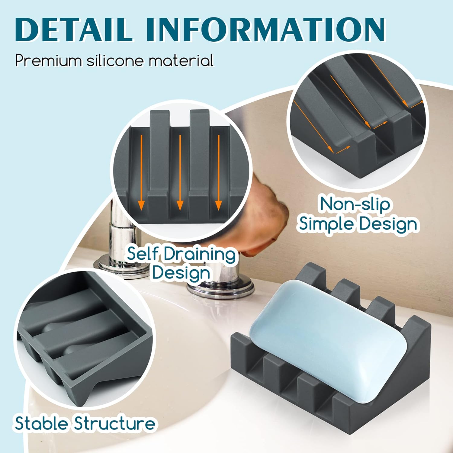 - Premium Material:Our soap savers is made of high quality soft silicone, non-slip and durable, flexible to the touch, easy to clean, and won't break, it is a great soap saver or dish washing sponge holder!