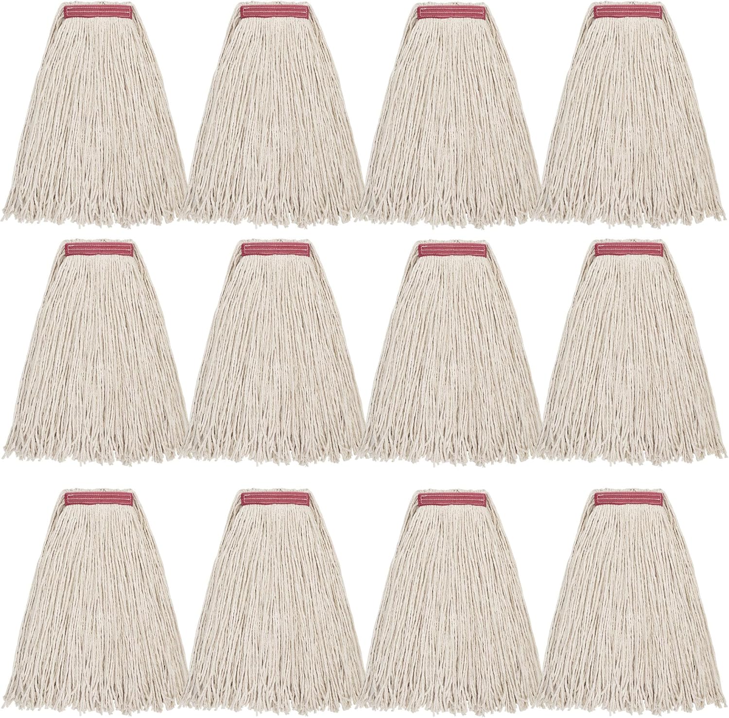 MATTHEW CLEANING 16oz 12Pack Cotton Mop Head Replacement,Cotton Looped-Open String Heavy Duty String Mop Refills, Universal Headband Blend,Floor Cleaning for Home, Industrial and Commercial Use(White)