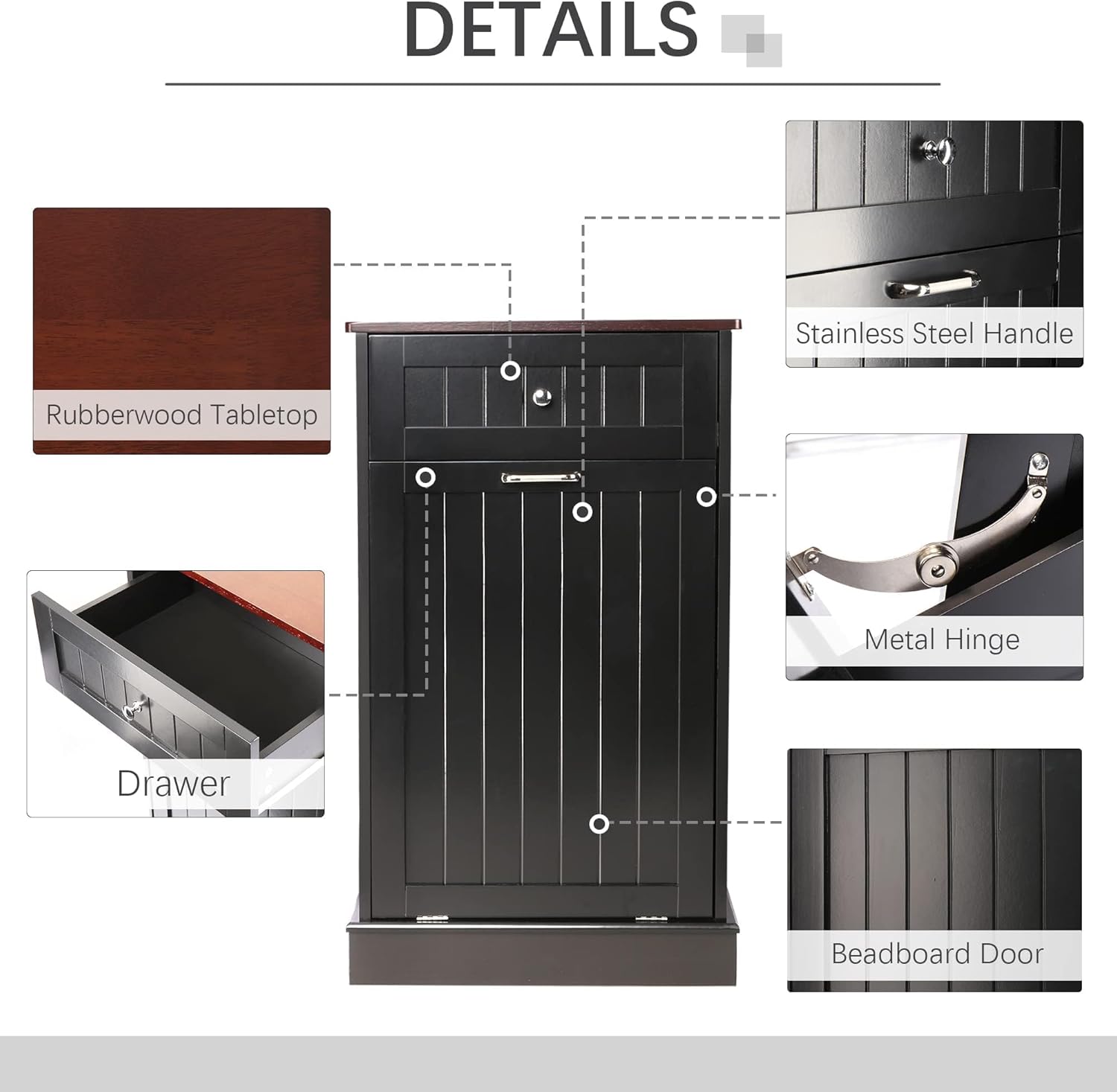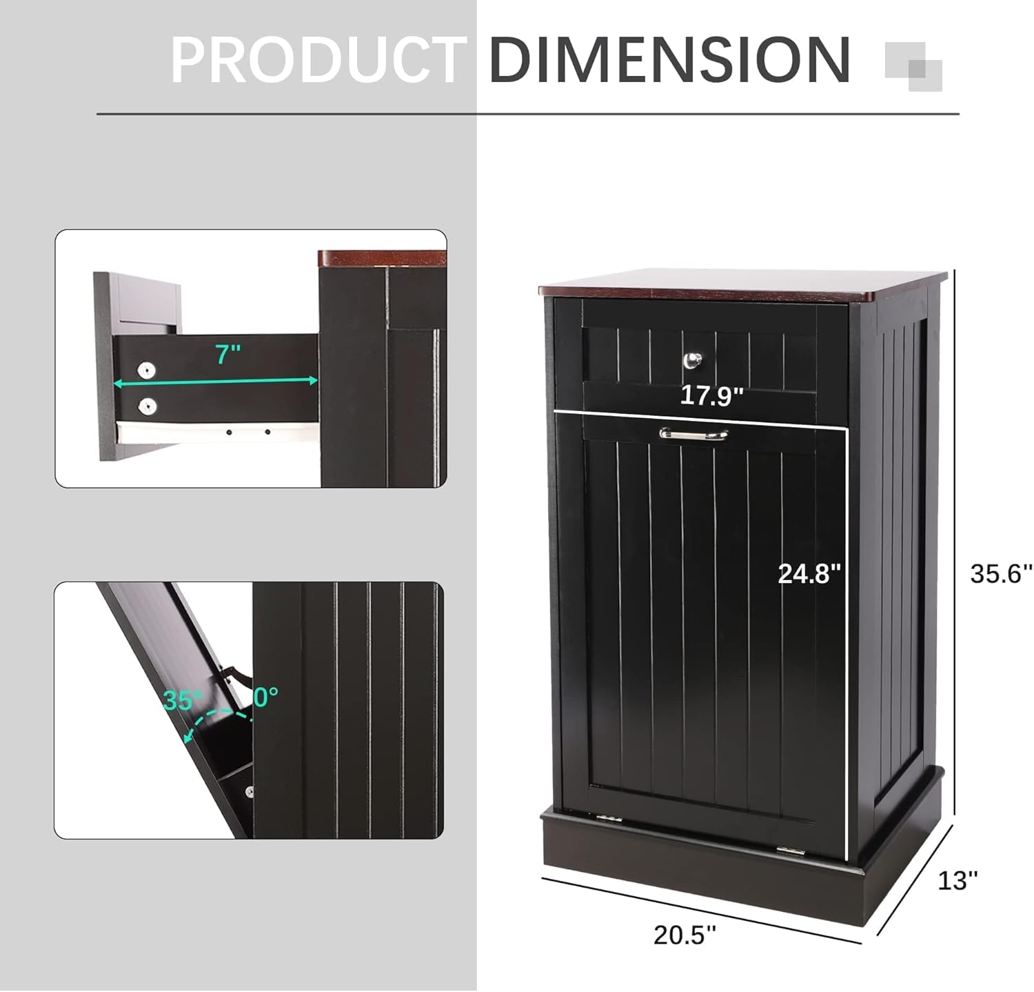 - 🏡【Durable and Stable】 35.6 "H x 20.5 "L x 13 "W cabinet support is stable enough to hold up to a 35 lb (ca. 16 kg). Our Trash can, a perfect match for a 10-gallon trash can(trash can not included). Rubberwood top surface provides extra cutting space, and can easily withstand even a microwave and coffee maker