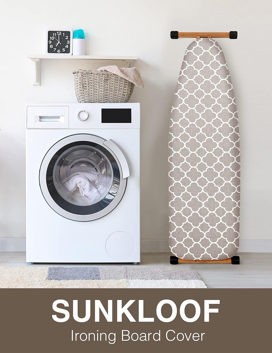 - ā„ PREMIUM AND ECO-FRIENDLY MATERIAL: Sunkloof ironing board cover is made of 4 layers- anti stain&scorch coated surface, 100% natural cotton, eco-foam layer and thick felt pad. All materials are eco-friendly . Compared with others, SUNKLOOF is more durable, and makes the boring ironing work easy and enjoyable