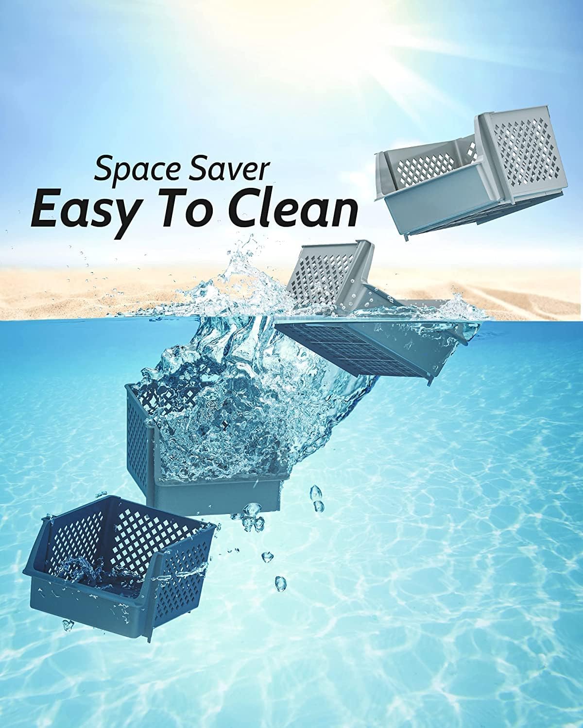 Skywin Plastic Stackable Storage Bins for Pantry - Stackable Bins for Organizing Food, Kitchen, and Bathroom Essentials (Grey - 50 Pack)
