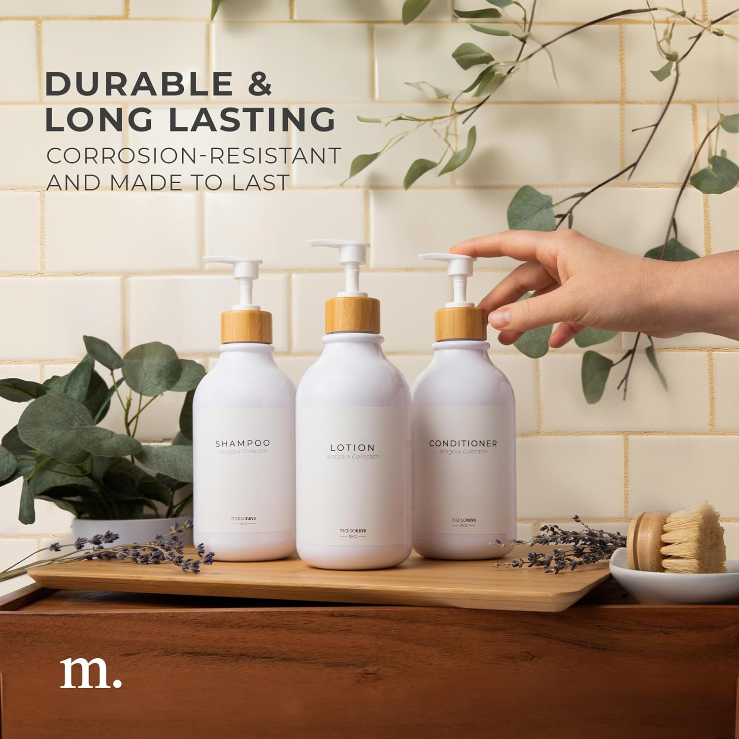 MaisoNovo Soap Pump Replacement - 2X White Bamboo Pumps - Pump Dispenser - Soap Dispenser Pump Replacement - Stainless Steel Soap Pump - Pump for Soap Dispenser