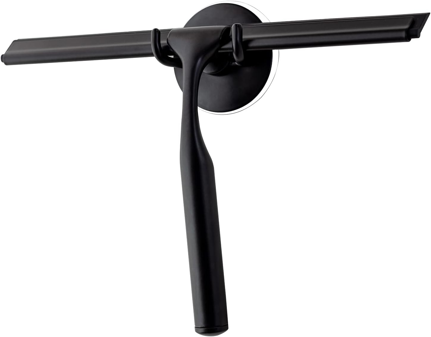 Ettori Shower Squeegee for Glass Doors, Squeegee for Shower Glass Door, Window and Car Glass, Mirrors - All-Purpose Stainless Steel Squeegee, 10 Inches and Black