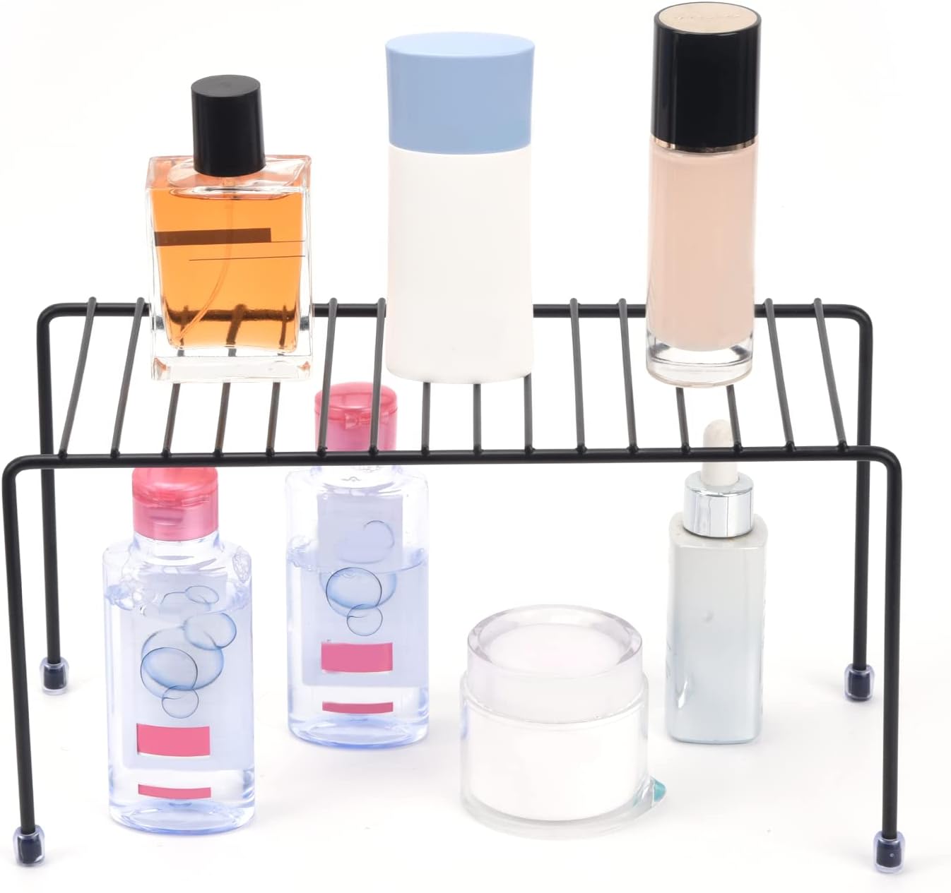Kitchen Shelves, Cabinet Organization Mini Storage Shelf, Storage Rack Organizer for Kitchen, Fridge, Cabinet, Bathroom (Black 2)