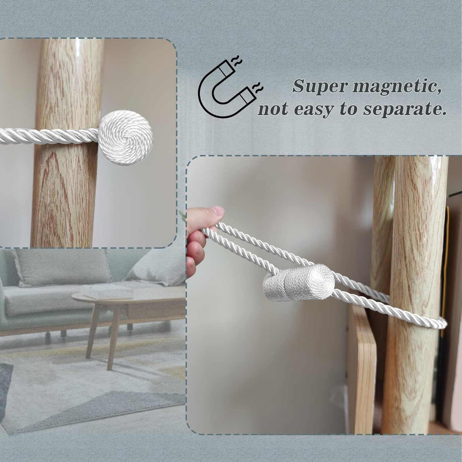 - [Upgrade Powerful Magnetic] Our magnetic curtain tiebacks magnets use high-end new imported nickel-plated magnets, with strong corrosion resistance and durability, more magnetic than ordinary magnetic curtain tiebacks, and do not rust and not lose color. The rope of curtain tie adopts upgrade thickened solid polyester yarn, which is not only durable, but also not easy to wear or pilling.