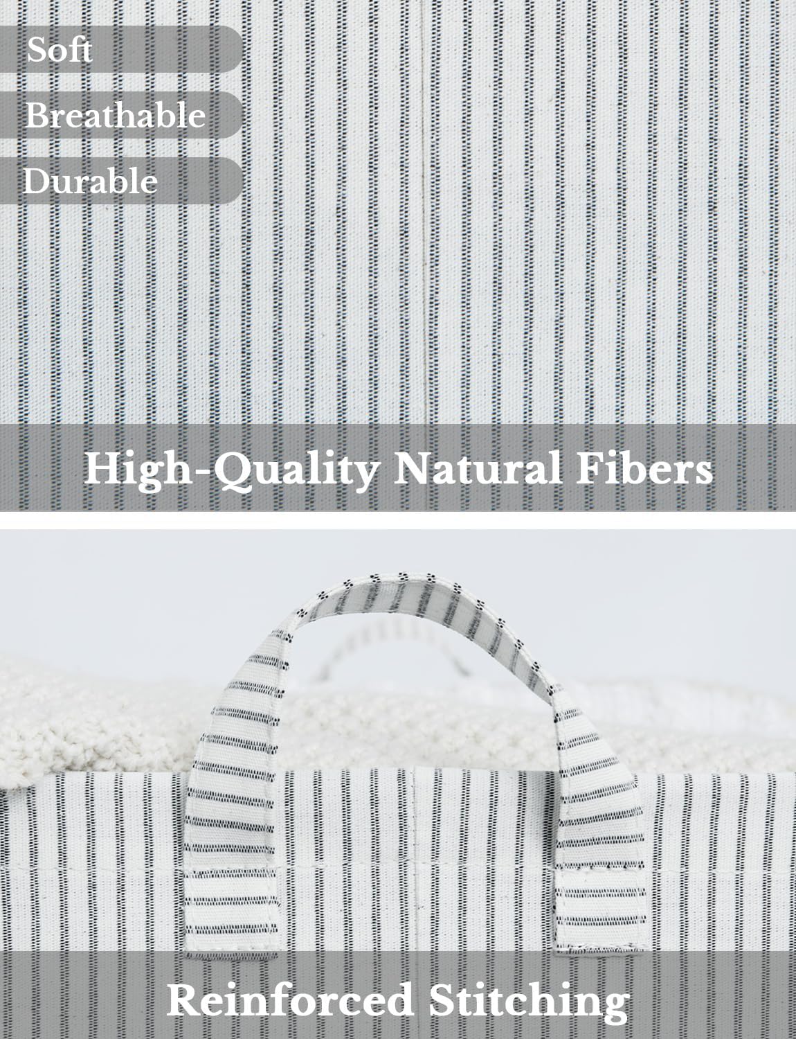 StorageWorks Storage Bins, Fabric Storage Bins for Shelves, Extra Large Storage Baskets with Metal Frame, Closet Baskets and Bins with Handles, Jumbo, Gray and White Stripes, 2-Pack