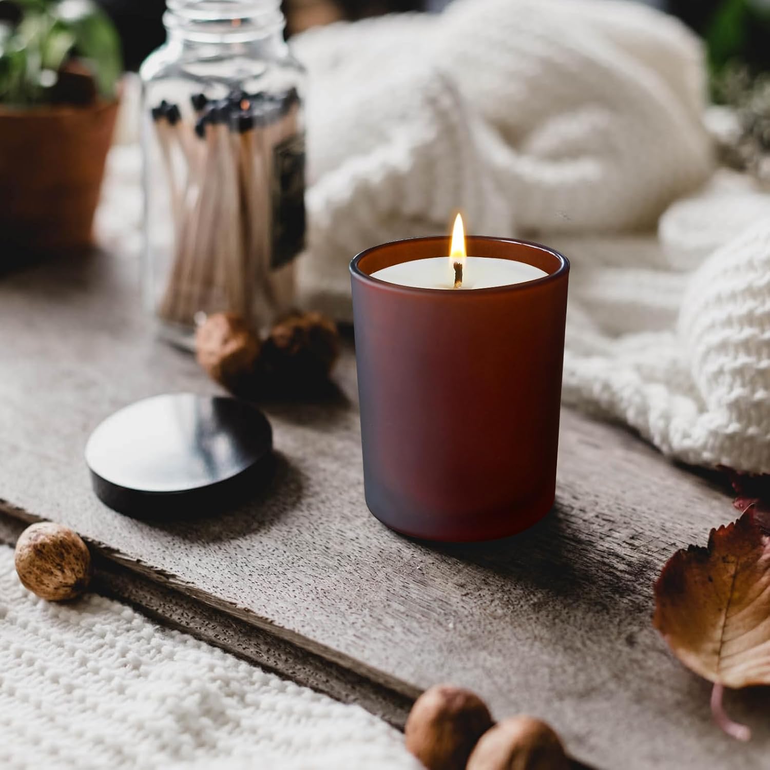 - [Glass Candle Vessel] A perfect fall candle jars for making candles. Designed with wood lid and glass , stylish appearance, simple and modern, can be used as elegant home decoration, candlelight through the amber candle jars, create a warm family atmosphere.
