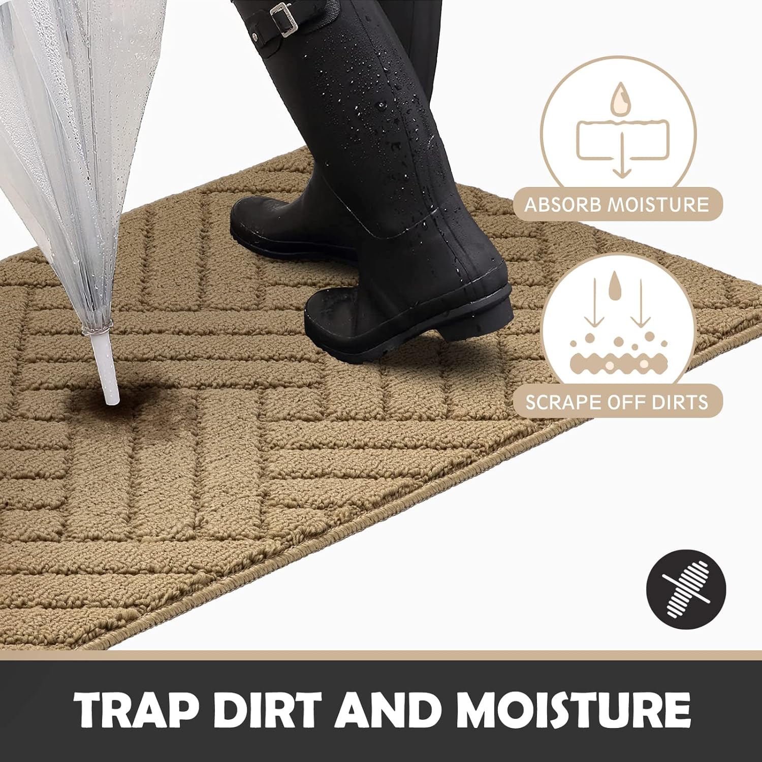 - KEEP YOUR FLOORS CLEANE AND DRY: Our Indoor Doormat was designed with double layer technology and irregularity carpet surface design. It is more efficient to absorb water and catch mud and moisture from muddy boots or pet’s paws. No pressure, keep your home cleaner and more beautiful