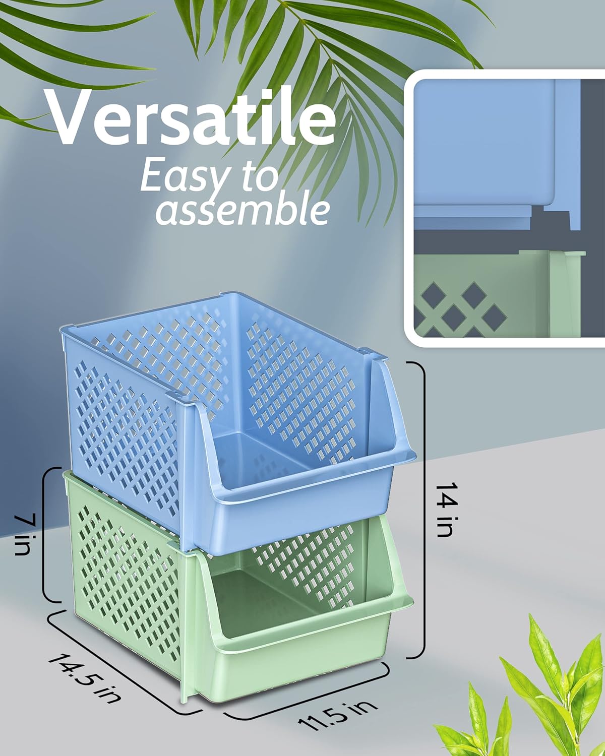 Skywin Plastic Stackable Storage Bins for Pantry - 2 Pack Stackable Bins For Organizing Food, Kitchen, and Bathroom Essentials (Multi)