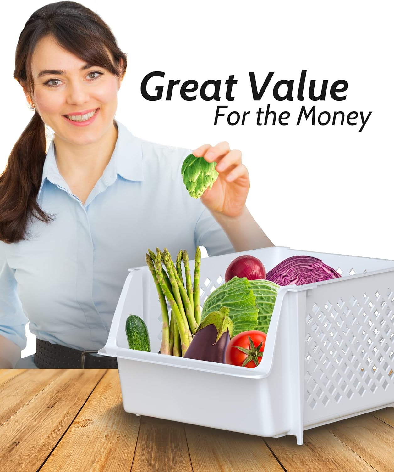 TidyFriend Plastic Stackable Storage Bins for Pantry, 2-Pack Stackable Bins for organizing food, kitchen, and bathroom essentials (White)
