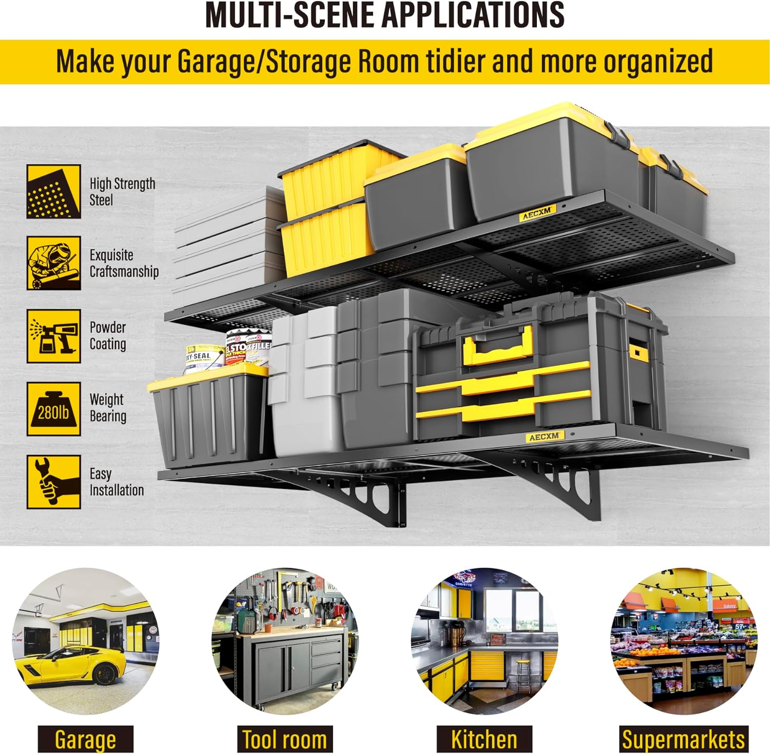 - Rigorous Load Testing: When properly installed on wood studs, the garage wall shelf total weight capacity reaches at least 560lbs, with each individual panel supporting to 280lbs with no bending or warping
