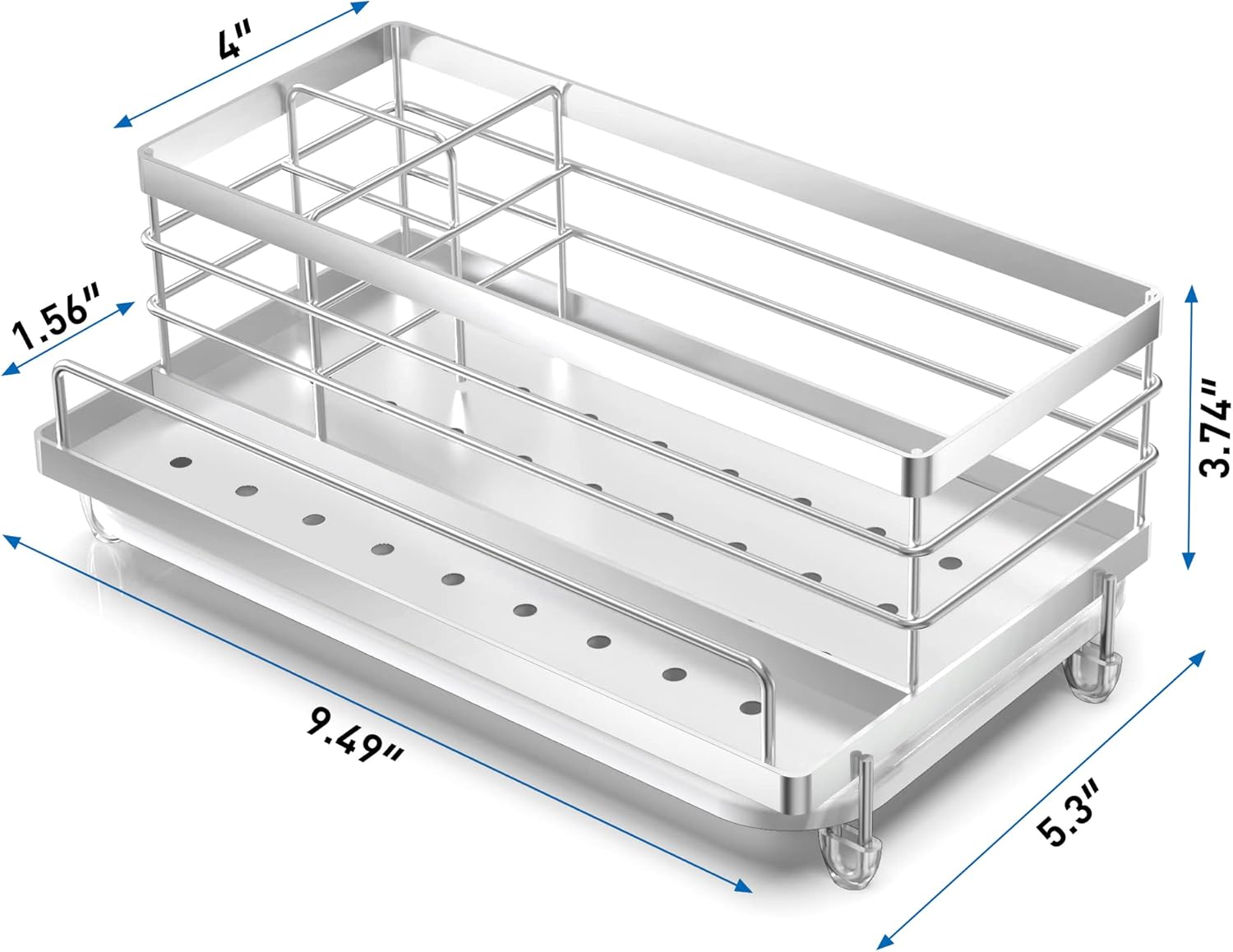 - ăMORE STORAGE SPACE ăCompared to other kitchen sink caddy CISILY sponge holder expands to 5.3 inches wide and 9.49 inches long, enhancing its kitchen organization function, and allowing flexible placement of sponges, dish soap, soap dispensers, brushes, sink plugs and more. Make the most of every inch of space and make your kitchen look cleaner.