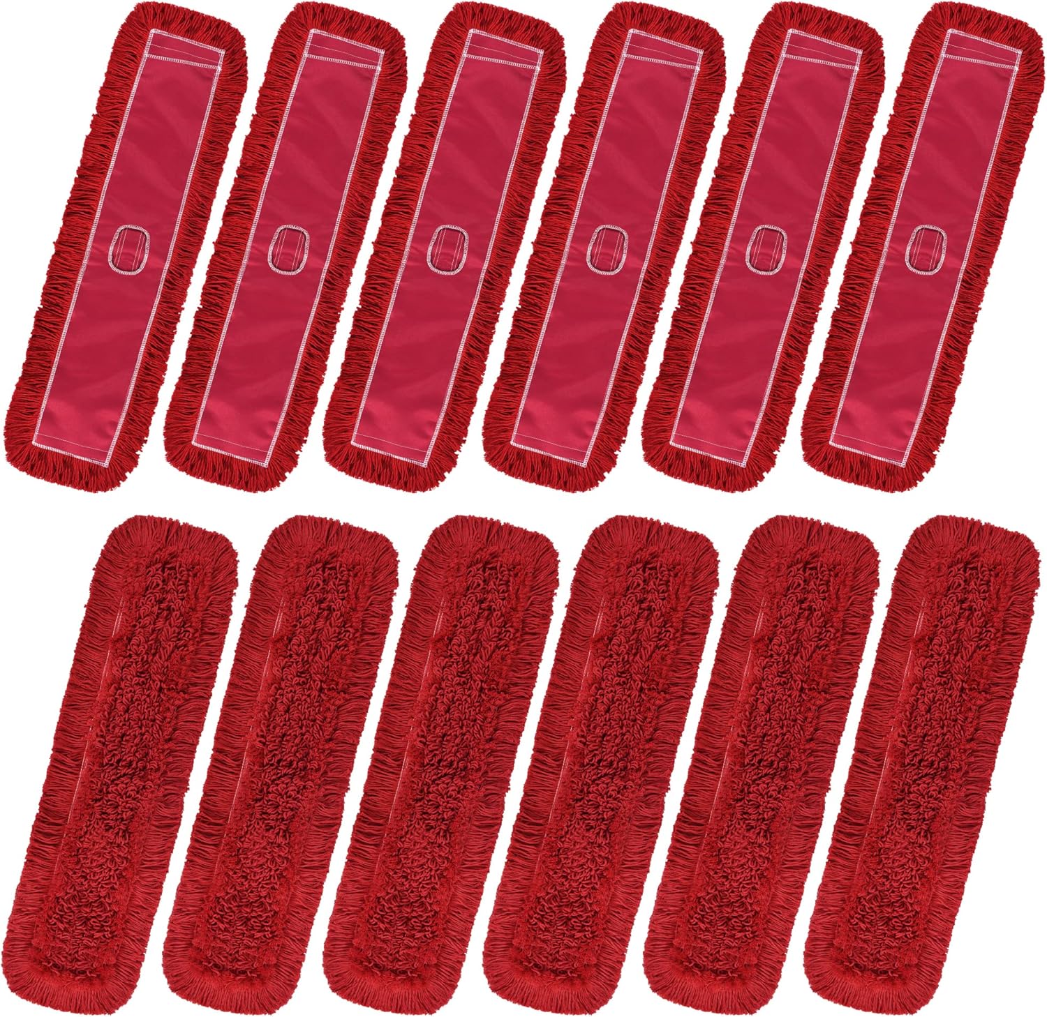 Matthew Cleaning 36'' Industrial Strength Cotton Dust Mop Refill Washable Replacement Heads for Residential & Commercial Use Fit Standard Dust Mop Frames, Hardwood, Concrete Floors Red 12 Pack