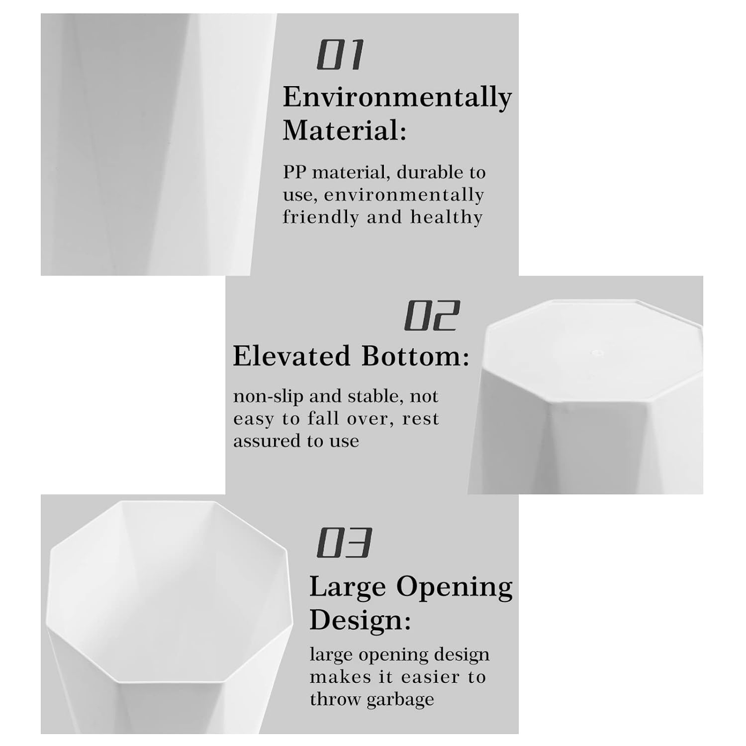 12L Trash Can Wastebasket Plastic Trash Bin Garbage Container Rubbish Can Paper Basket Office Organizer for Bedroom Home Office, 6 White
