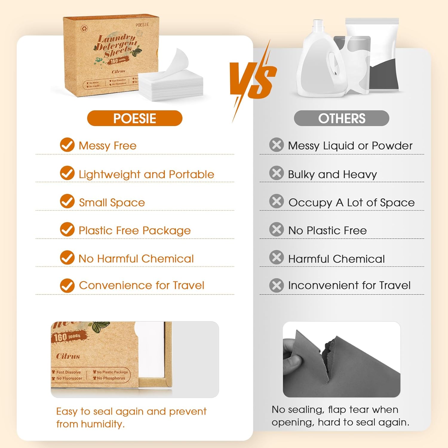 - Upgraded dissolution - We have upgraded the dissolving ability of the product by adding more actives so that the laundry soap sheets can dissolve better. Smaller Size, Lighter Weight and Better Cleaning Ability compared to traditional laundry detergent