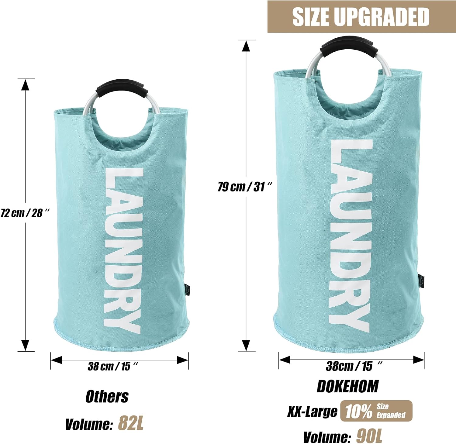 DOKEHOM 90L Large Laundry Basket, Collapsible Laundry Bag, Freestanding Tall Clothes Hamper, Foldable Washing Bin (Light Blue)