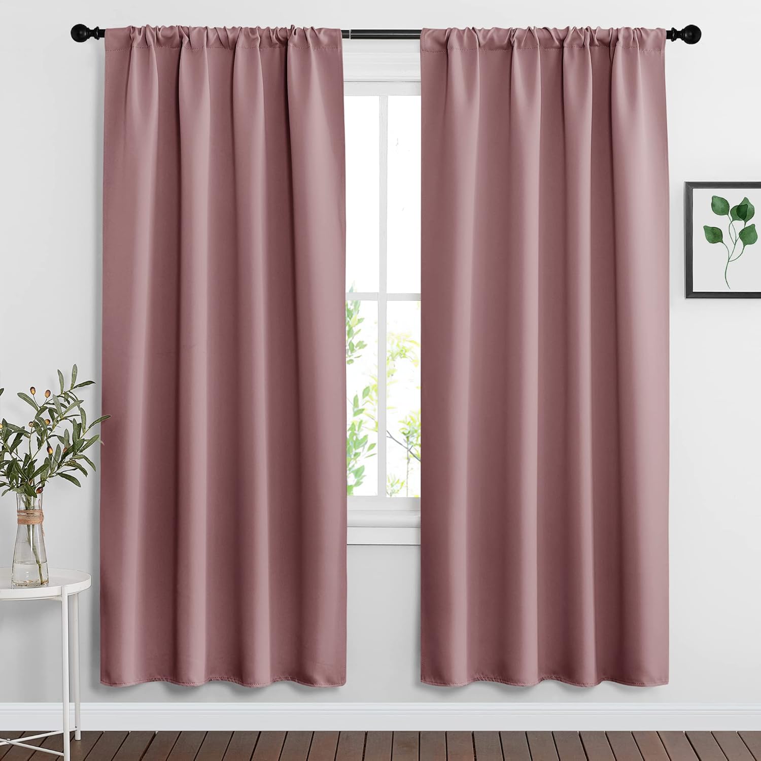 RYB HOME Living Room Curtains Blackout - Light Block Energy Efficiency Small Window Treatment Drapes for Kitchen Dining Baby Nursery Farmhouse Decor, W 42 x L 72 inch, Dusty Rose, 2 Panels