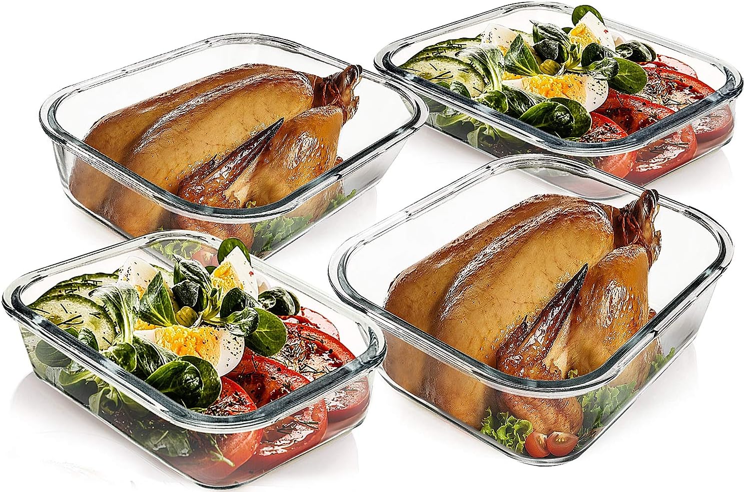 - EXTRA LARGE GLASS CONTAINER SET: Includes 4 Capacity Glass Food Storage Containers In Extra-Large 80 oz (2260 ml) And Large 36 oz (1040 ml) sizes