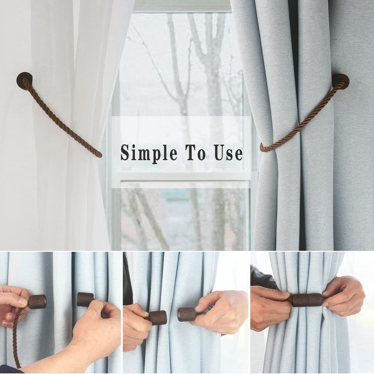 - Simple To Use- Holdback your curtain in seconds with a magnet, You only need to open the magnetic curtain holder and buckle the curtains to achieve the function of fixing the curtains. A better choice to tie back your curtains! Simply tie on anywhere when not in use. Our products do not need to use hooks, Will not damage your walls.
