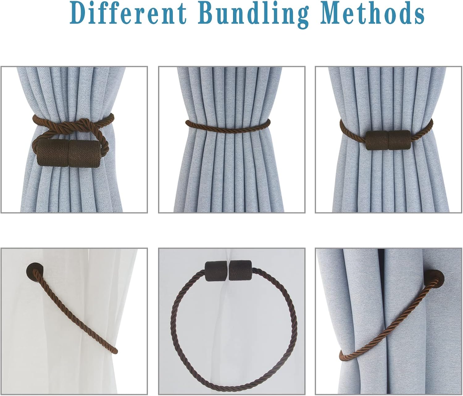 - High-Quality Materials- Magnetic curtain tie backs use an upgraded version of nickel-plated magnets, which are strong and smooth. The brightly colored twisted woven โtexture rope is hand-woven with premium polyester materials. very soft and good feeling. Beige/Gold/Black/White/Grey/Khaki/Coffee/Blue -Eight colors to choose from
