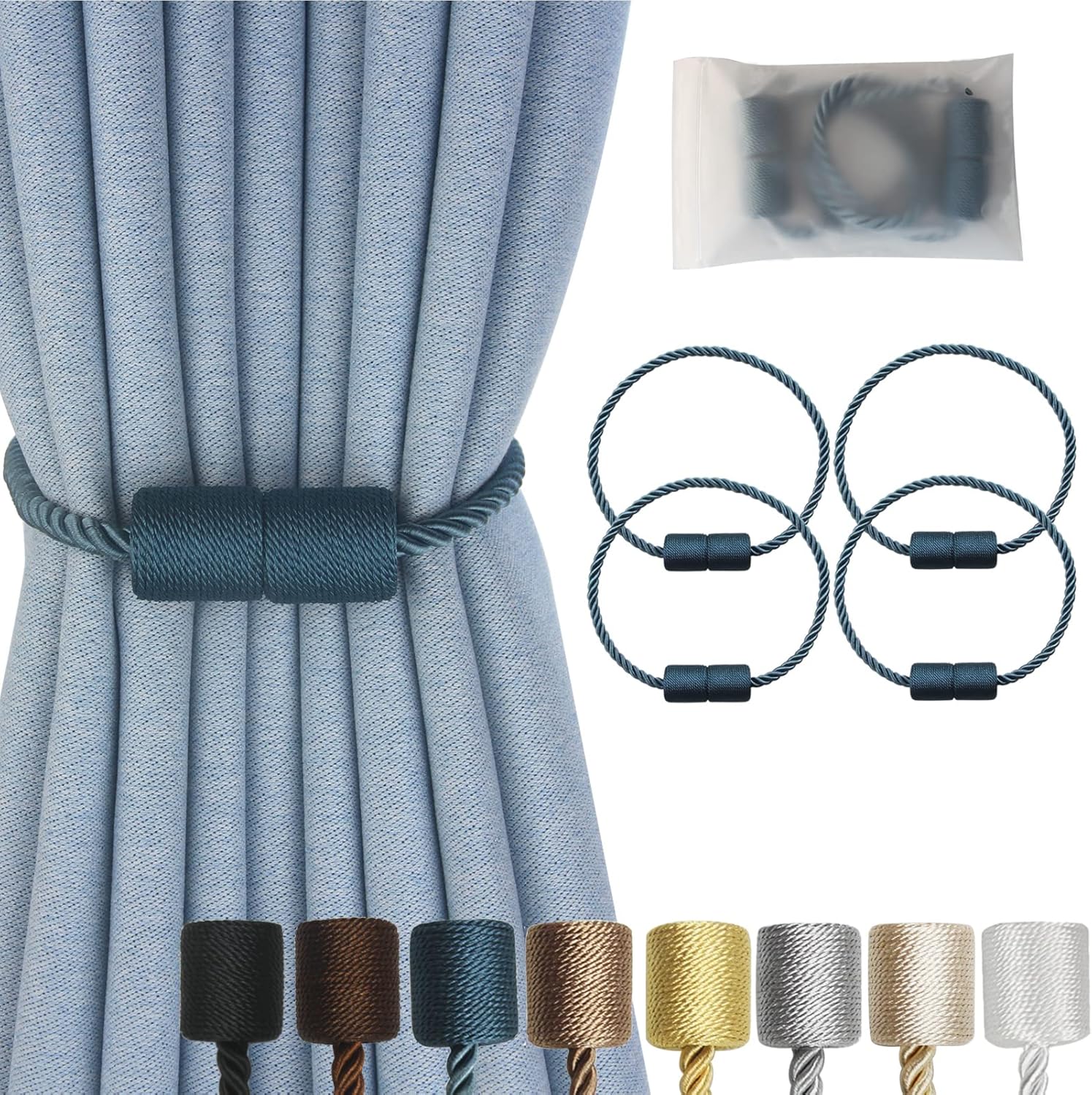 Magnetic Curtain Tiebacks 4 Pack Blue Curtain Rope Tieback Curtain Holders for Drapes Modern Tie Backs Decorative Curtain Holdbacks
