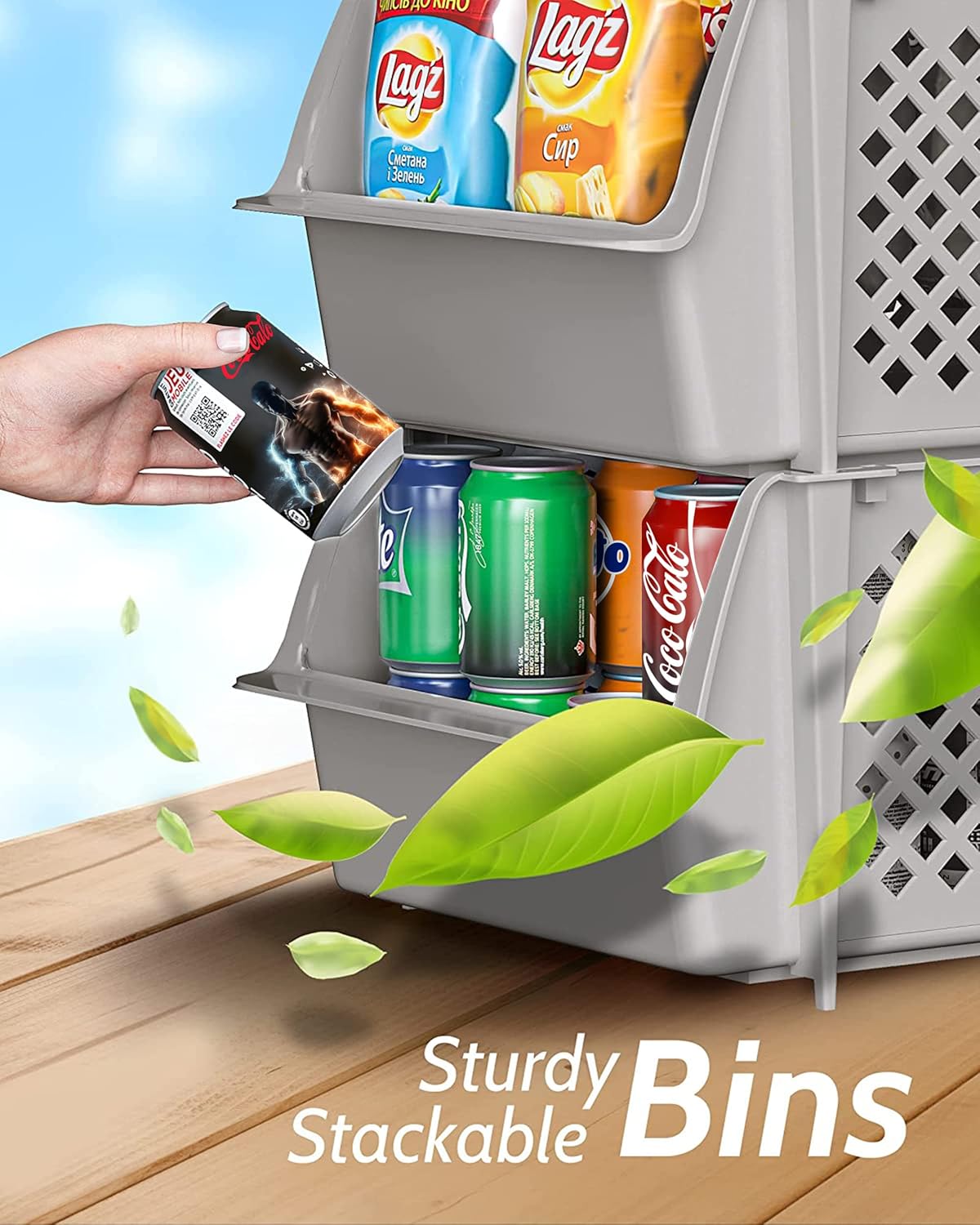 - KEEPS ESSENTIALS ORGANIZED AND VISIBLE - Stackable bins hold foods, toys, utensils, and toiletries without bending off. Set of 12, Each bin size: 14.5” x 11.5” x 7”