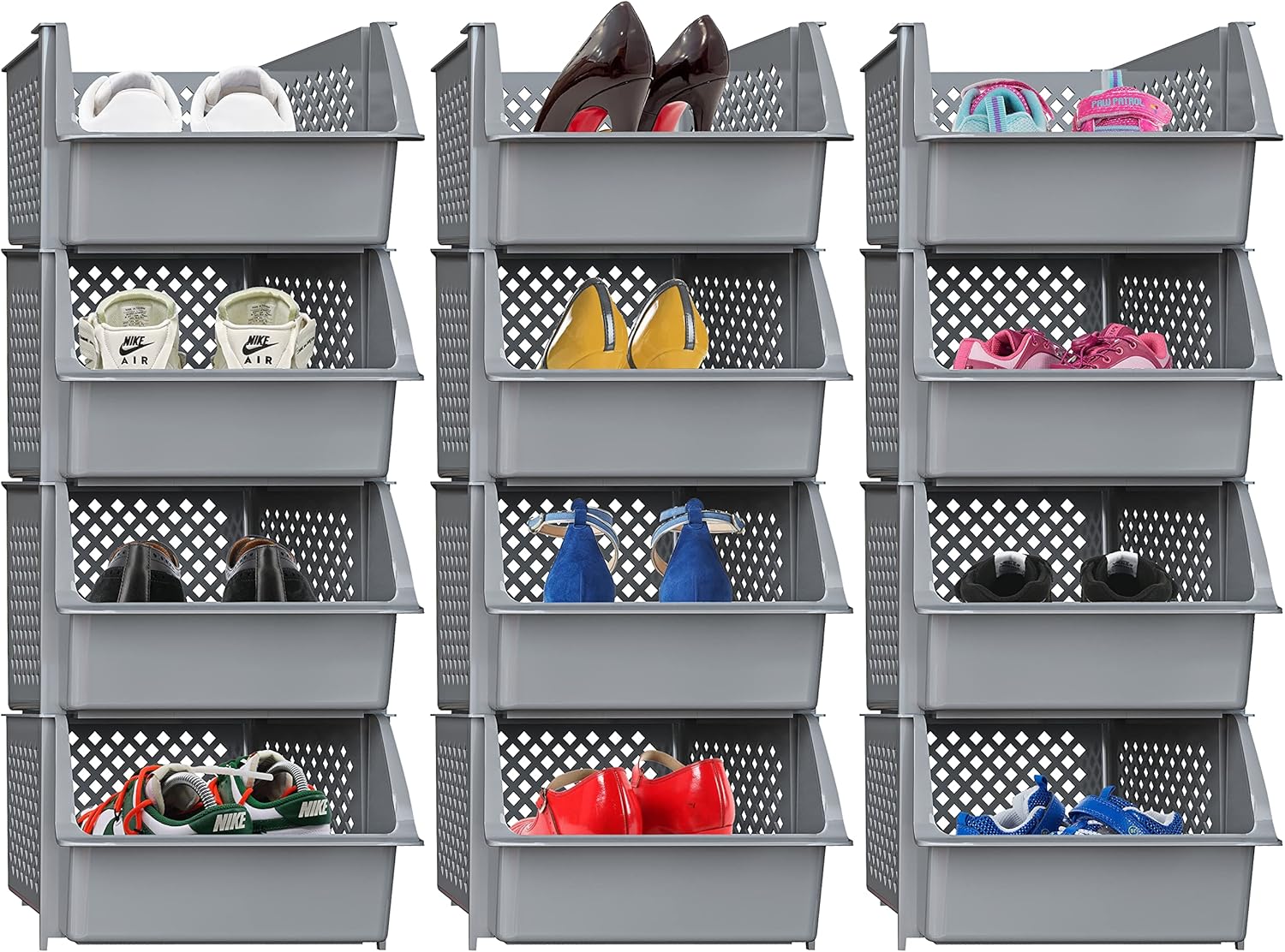 Skywin Plastic Stackable Storage Bins for Pantry, 12 Pack Stackable Bins For Organizing Food, Kitchen, and Bathroom Essentials (Grey)