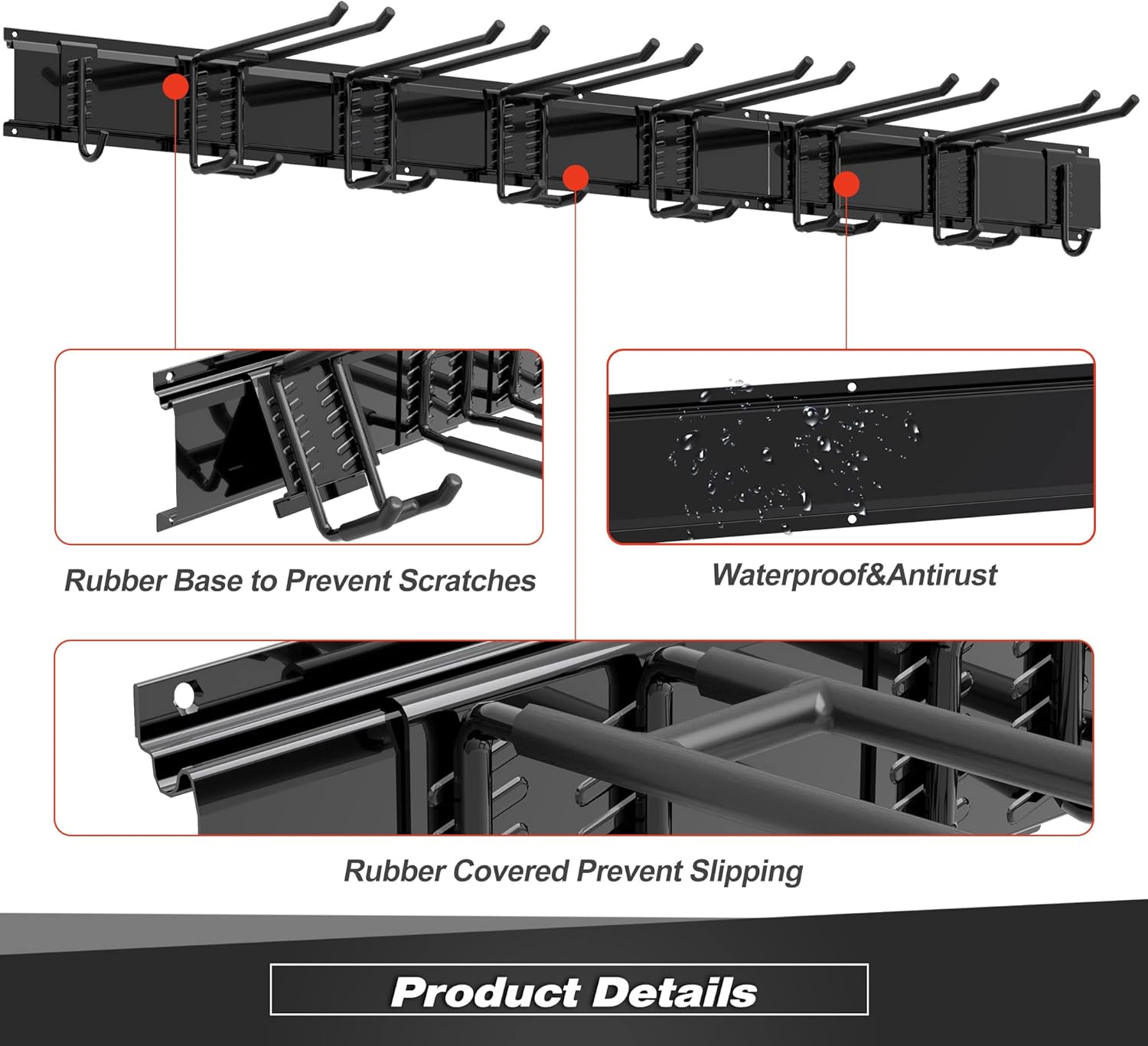 - Heavy-Duty Construction: Made with high-strength steel with powder-coated, this garage storage organizer can support up to 450 lbs, making it perfect for heavy tools and equipment. Resists rusting, chipping and cracking. Comes with 3 slot boards and 8 hooks, providing ample storage space for bikes, sports equipment, chairs, garden tools, shovels rakes, brooms, mops, extension cords, hoses, power tools, and other sporting equipment such as helmets, boots, ice skates, hockey sticks, ski gears etc.