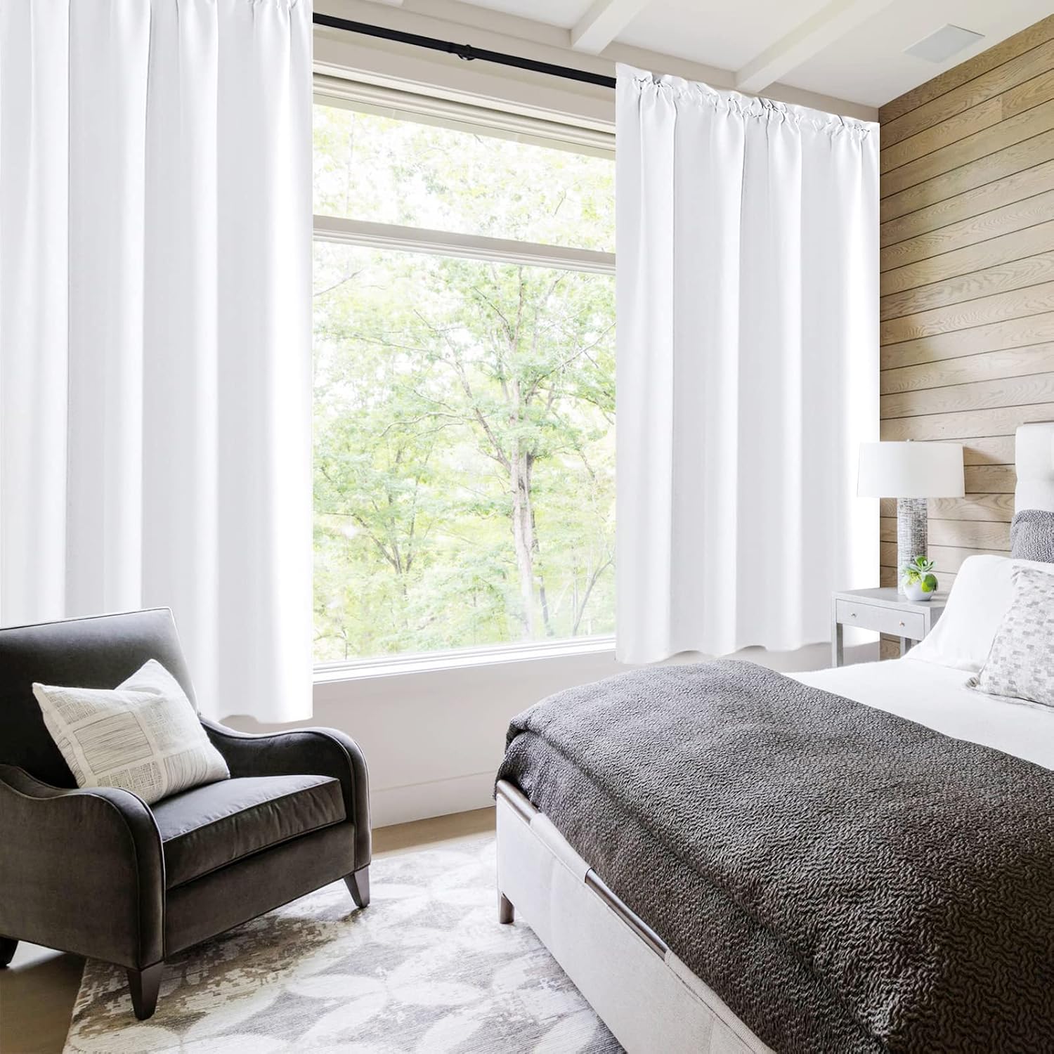 DWCN White Curtains for Living Room Thermal Insulated, 50% Light Blocking Curtains for Bedroom, Dining Room Window, W 52x L 63 Inch, Set of 2 Rod Pocket Curtain Panels