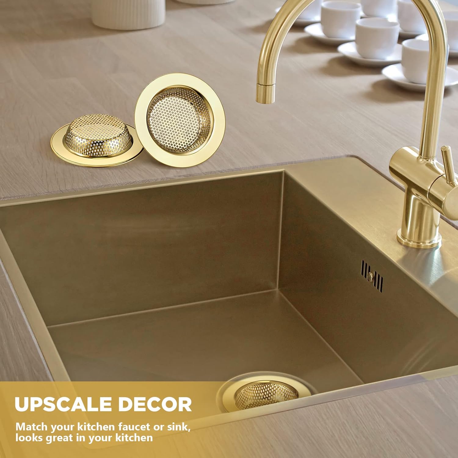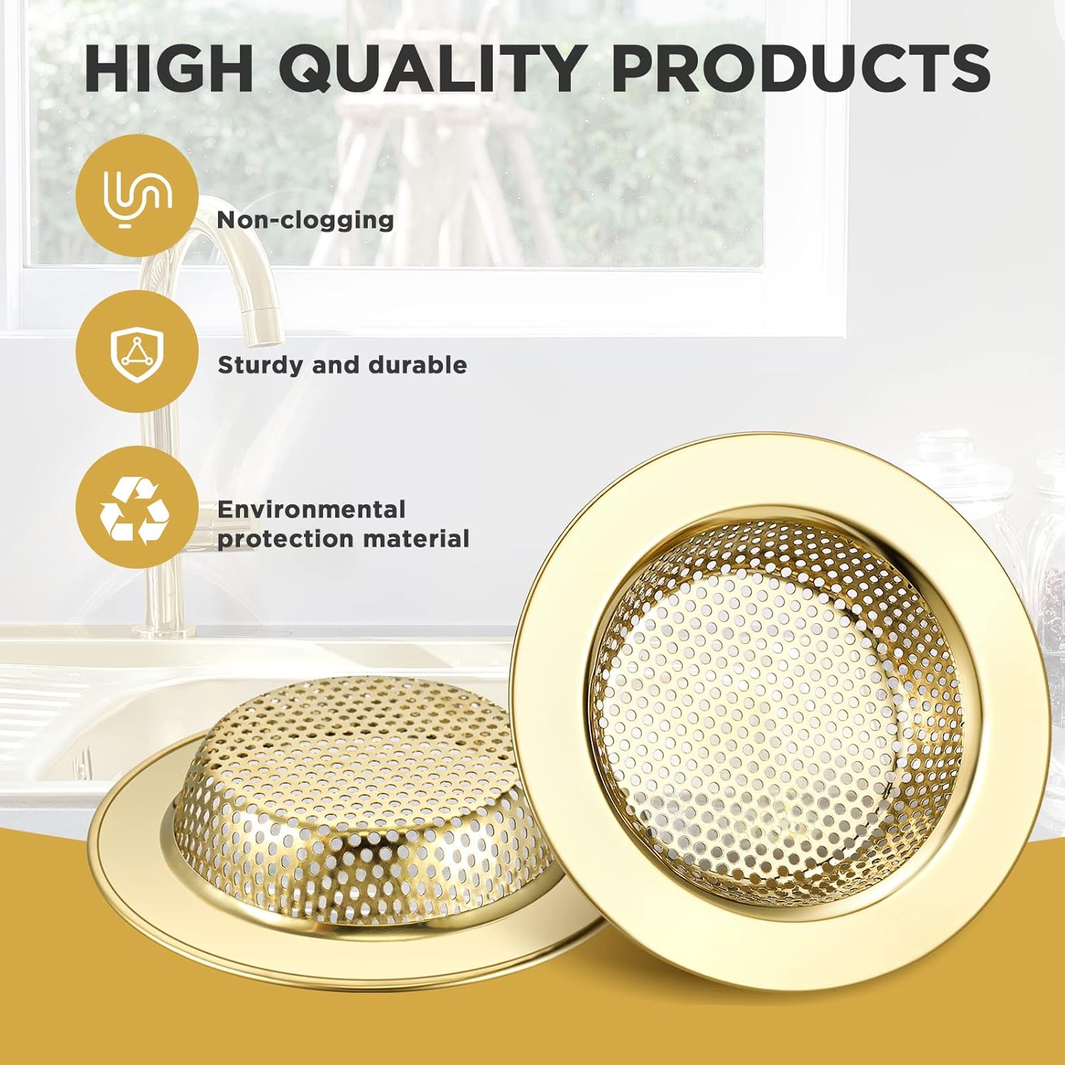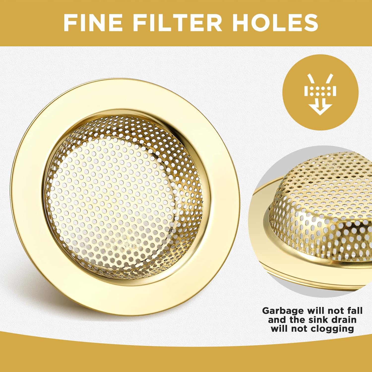 - Elegant Gold: this kitchen sink strainer is designed in gold, which is eye catching and beautiful, easily matching with your kitchen and bathroom decoration, basic yet beautiful, adding a sense of exquisiteness to your house