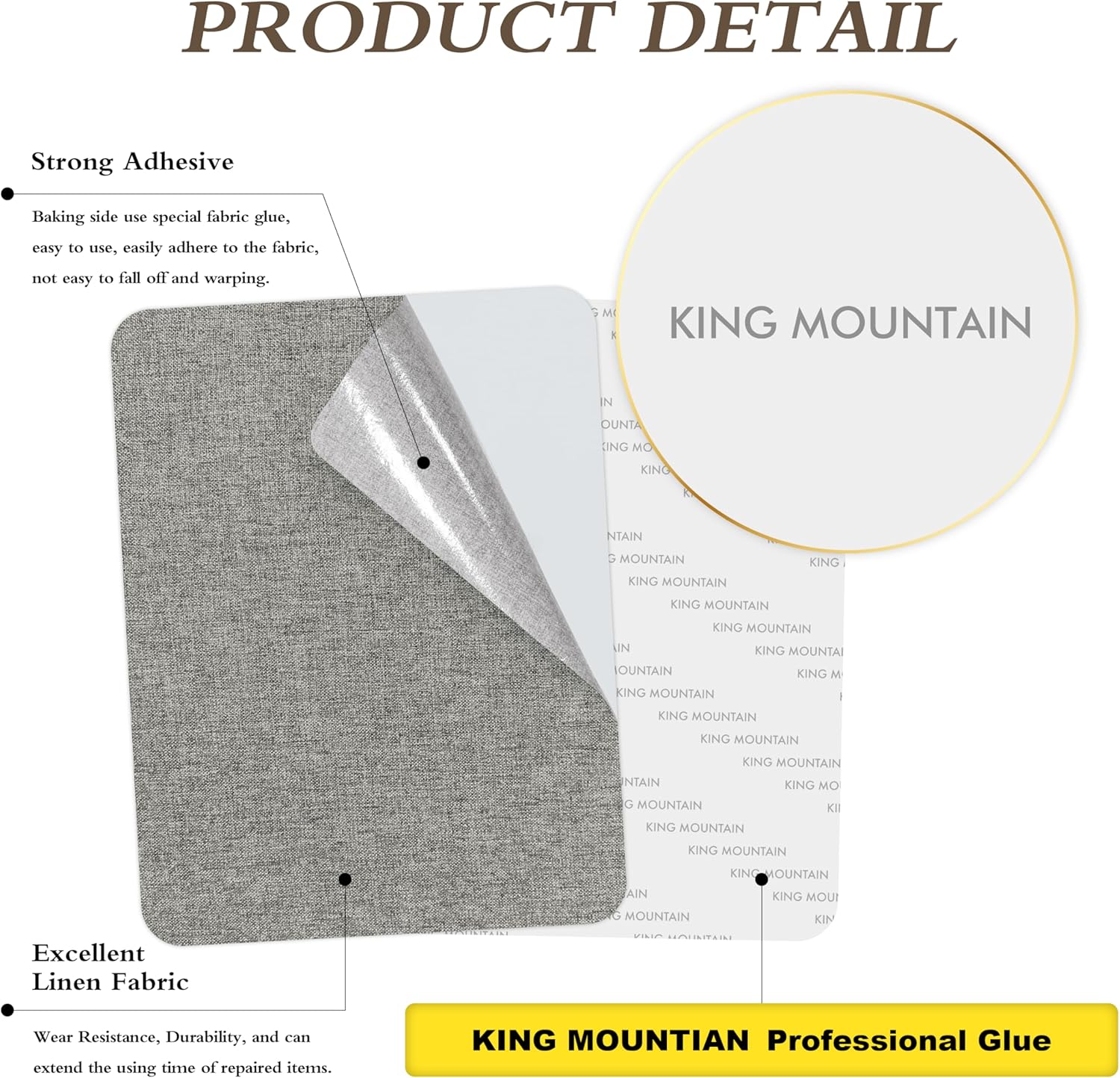 KING MOUNTAIN Fine Linen Fabric Patches, Self-Adhesive, 8x11 inch, 2 PCS, Multi Color, For Linen Sofa and Clothes Repair (Medium Grey, 8" x 11" - 2PCS)