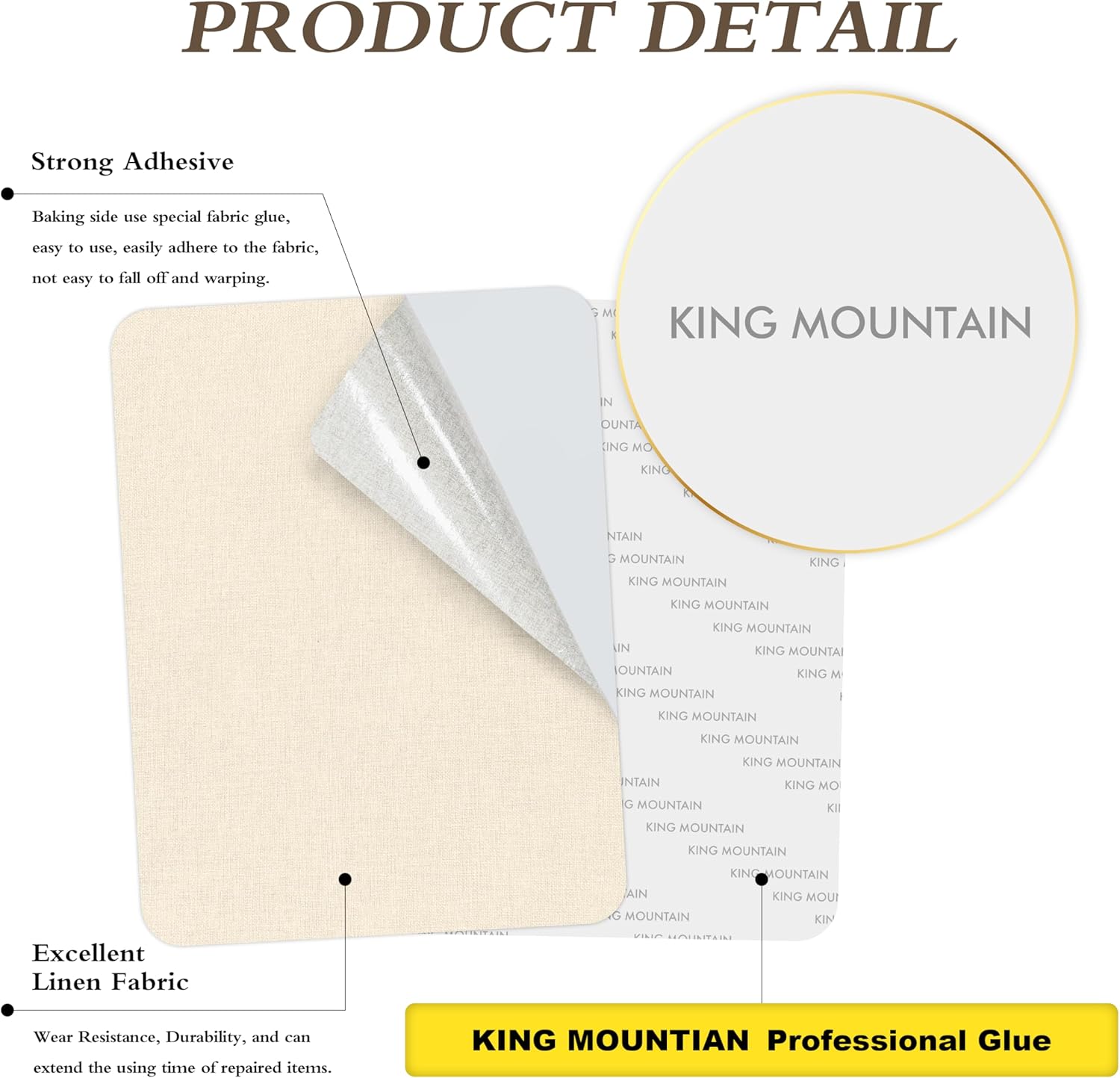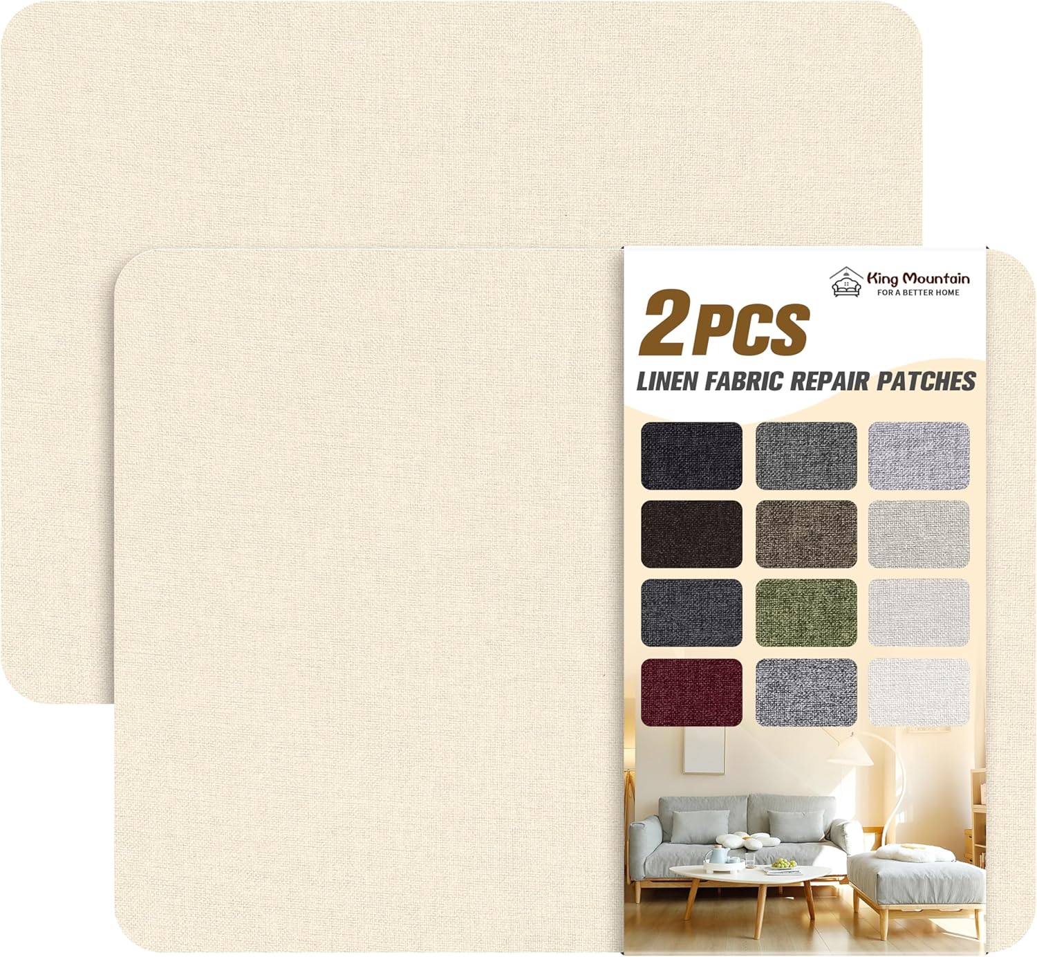 KING MOUNTAIN Fine Linen Fabric Patches, Self-Adhesive, 8x11 inch, 2 PCS, Multi Color, For Linen Sofa and Clothes Repair (Off White, 8" x 11" - 2PCS)