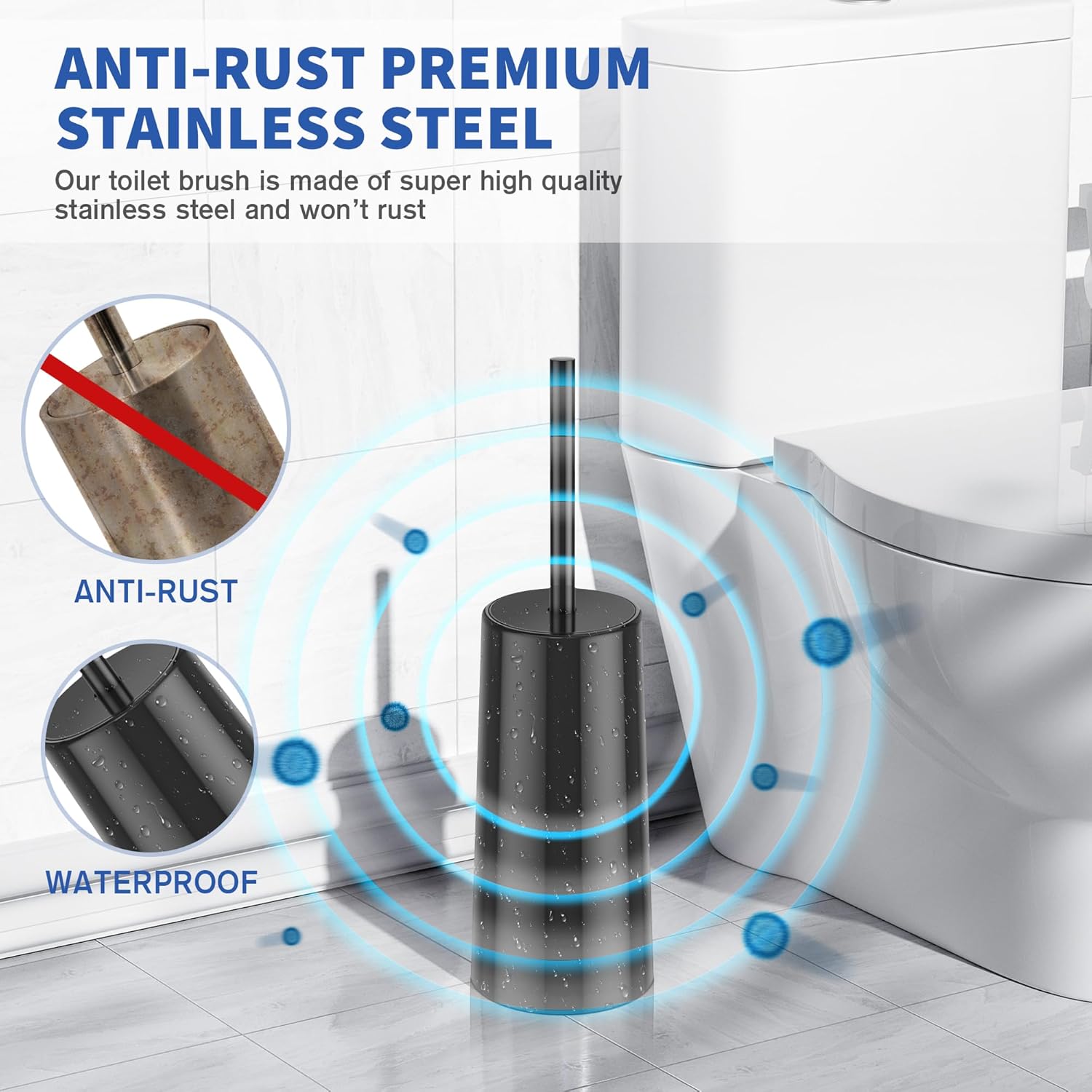 Toilet Brush and Holder, Toilet Brush Stainless Steel, Toilet Bowl Brush for Bathroom Toilet-Ergonomic, Elegant,Durable (Black)