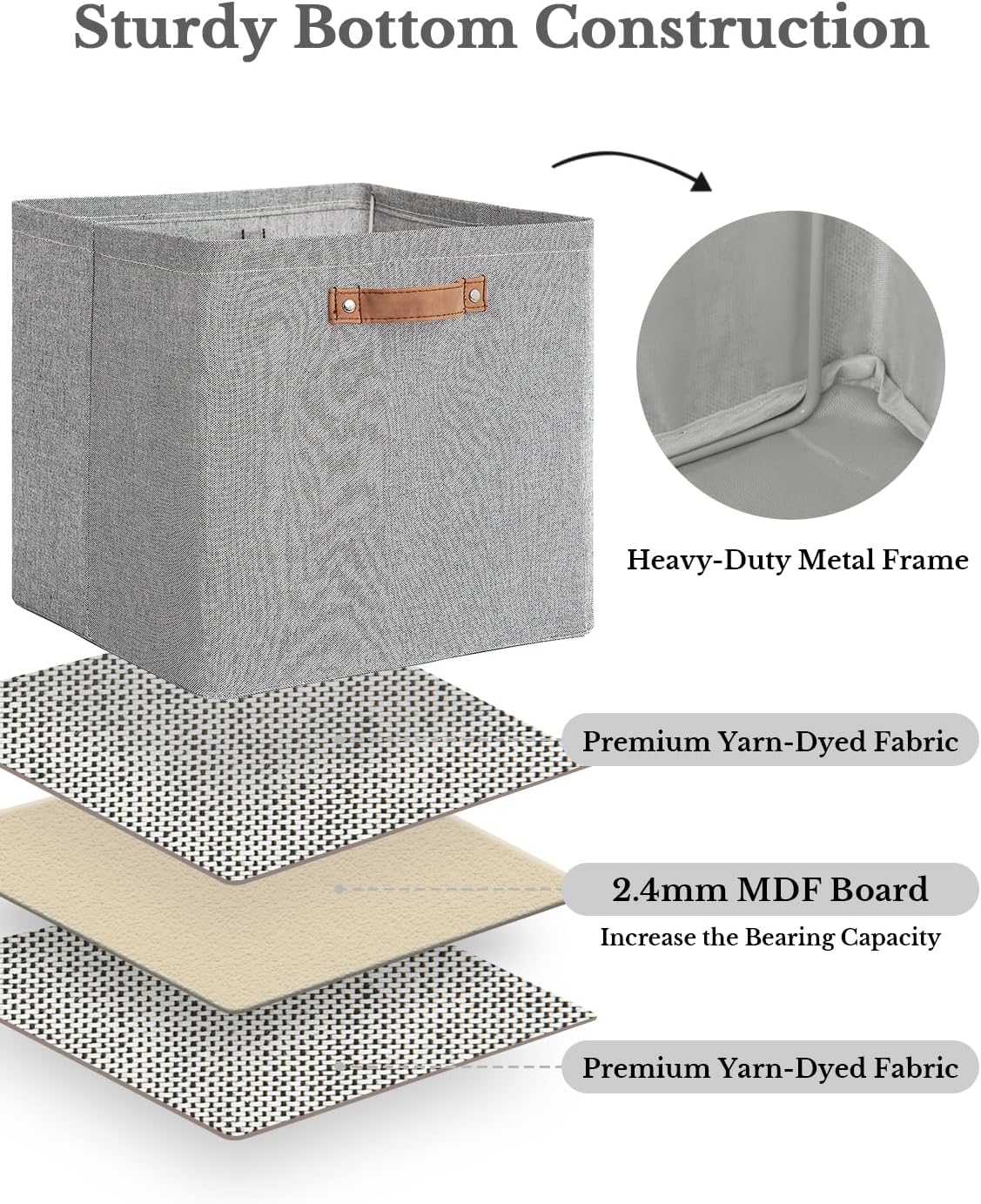 StorageWorks 13x13 Inches Storage Cube, Fabric Storage Bins with PU Handles, Collapsible Organizer Baskets for Closet, Gray, 4-Pack