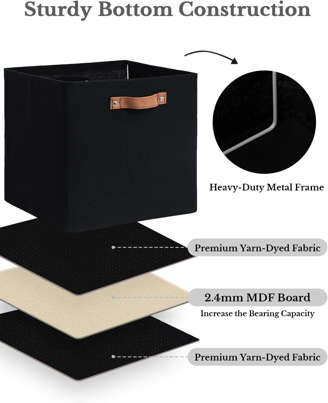 - Square organizer bins with a heavy-duty bottom board and metal frame can support a weight of up to 30 pounds.