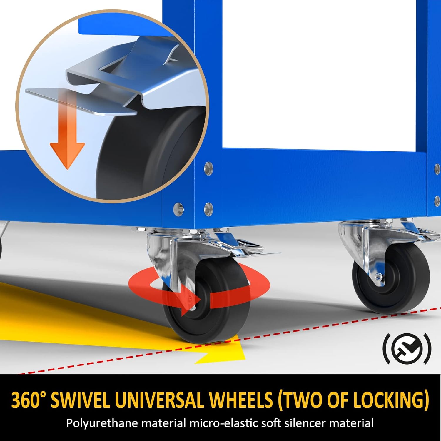 - Mobility and Convenience: Equipped with four sturdy 360-degree swivel wheels(2 with brakes and 2 universal) for easy mobility and transport. Ergonomic push handle make Move it effortlessly around your workspace or take it to different job sites, ensuring your tools are always within reach.
