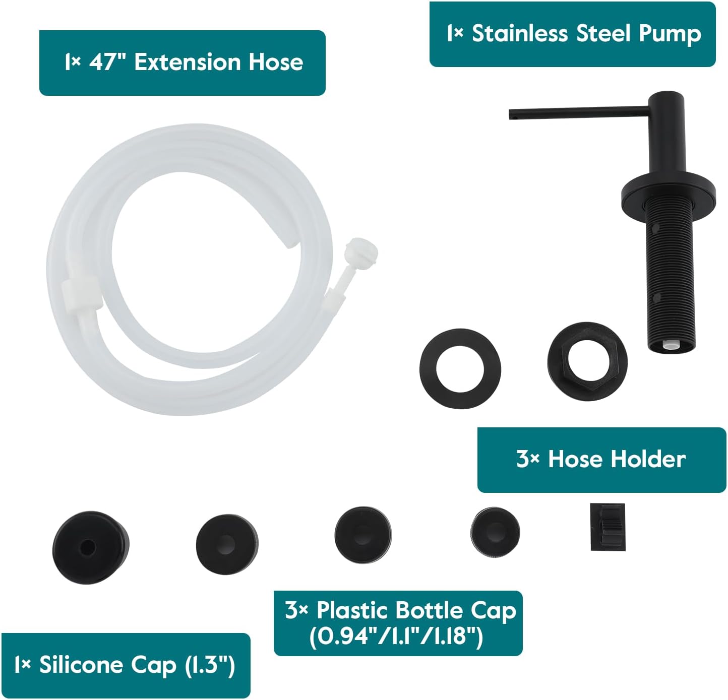 Gappo Upgraded Matte Black Soap Dispenser for Kitchen Sink, Stainless Steel Countertop Pump, Built in Sink Soap Dispenser with 47" Extension Tube kit