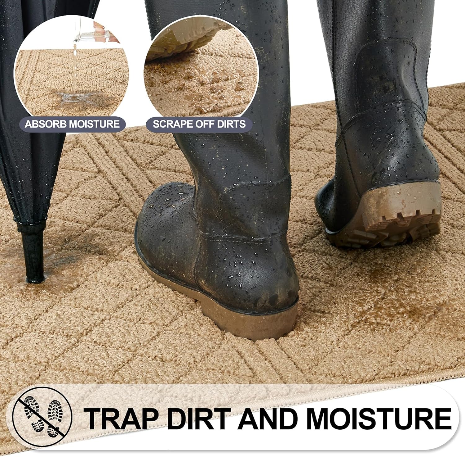 - 【TRAP DIRT & ABSORB MOISTURE】Eliminates dirty and wet foot prints when you entering the house. REFETONE door mat using double layer technology which helps to scrap off dirt, water, dust, grit, mud, sand, grass, slush, snow and absorb moisture from shoe. Say goodbye to messy floors and keep your indoor environment clean and tidy. Indoor doormat perfect for high-traffic areas and widely used for all seasons, especially for the rainy, snowy, or muddy weather. Enjoy your home every time!