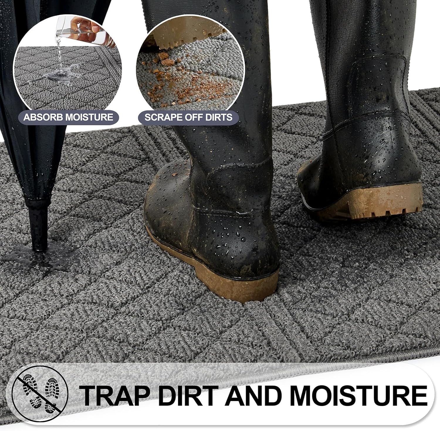 - 【TRAP DIRT & ABSORB MOISTURE】Eliminates dirty and wet foot prints when you entering the house. REFETONE door mat using double layer technology which helps to scrap off dirt, water, dust, grit, mud, sand, grass, slush, snow and absorb moisture from shoe. Say goodbye to messy floors and keep your indoor environment clean and tidy. Indoor doormat perfect for high-traffic areas and widely used for all seasons, especially for the rainy, snowy, or muddy weather. Enjoy your home every time!