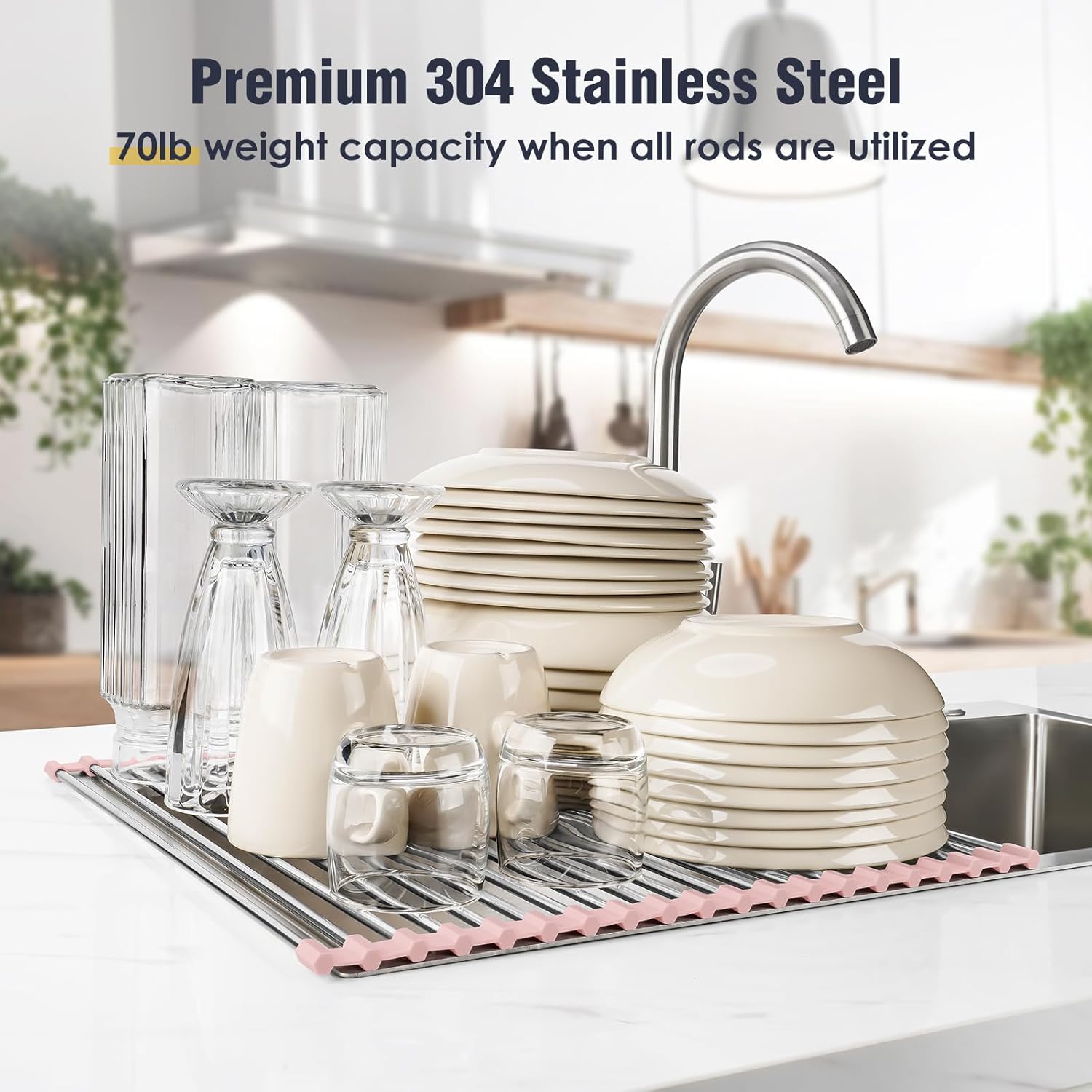 Tomorotec 21" x 15.5" Roll Up Dish Drying Rack Over Sink Drying Rack Sink Cover Kitchen Sink Accessories Gadget Multipurpose Organizer Foldable Stainless Steel Drainer
