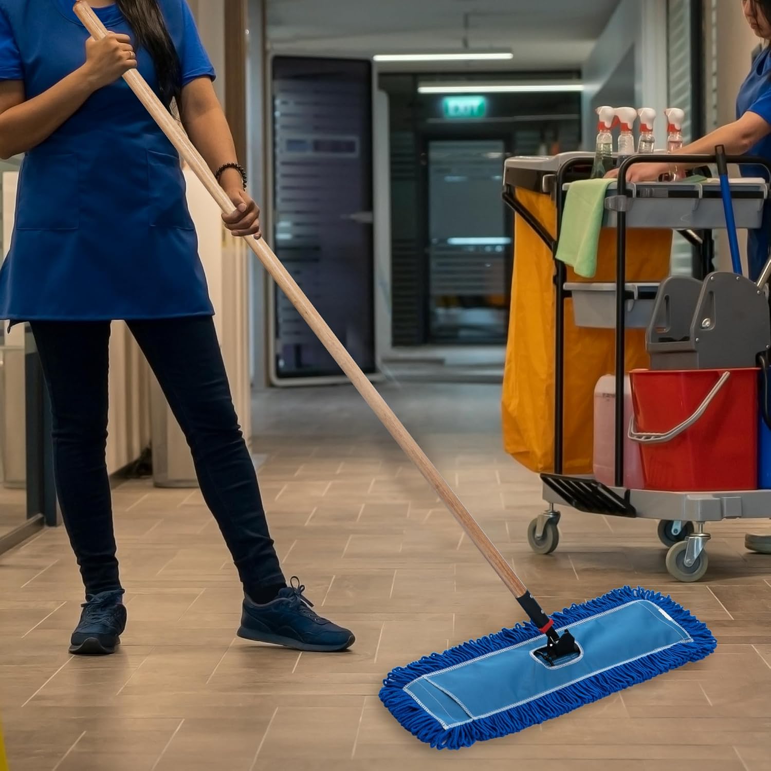 - The professional grade dust mop is designed with looped ends to minimize lint and prevent unraveling, making it a reliable option for efficient and effective cleaning. Its heavy-duty performance and durability make it suitable for various cleaning tasks, particularly on large floors.Unlike standard blend dust mops,the microfiber material is more durable, which means it can withstand regular use and washing without significant wear and tear.